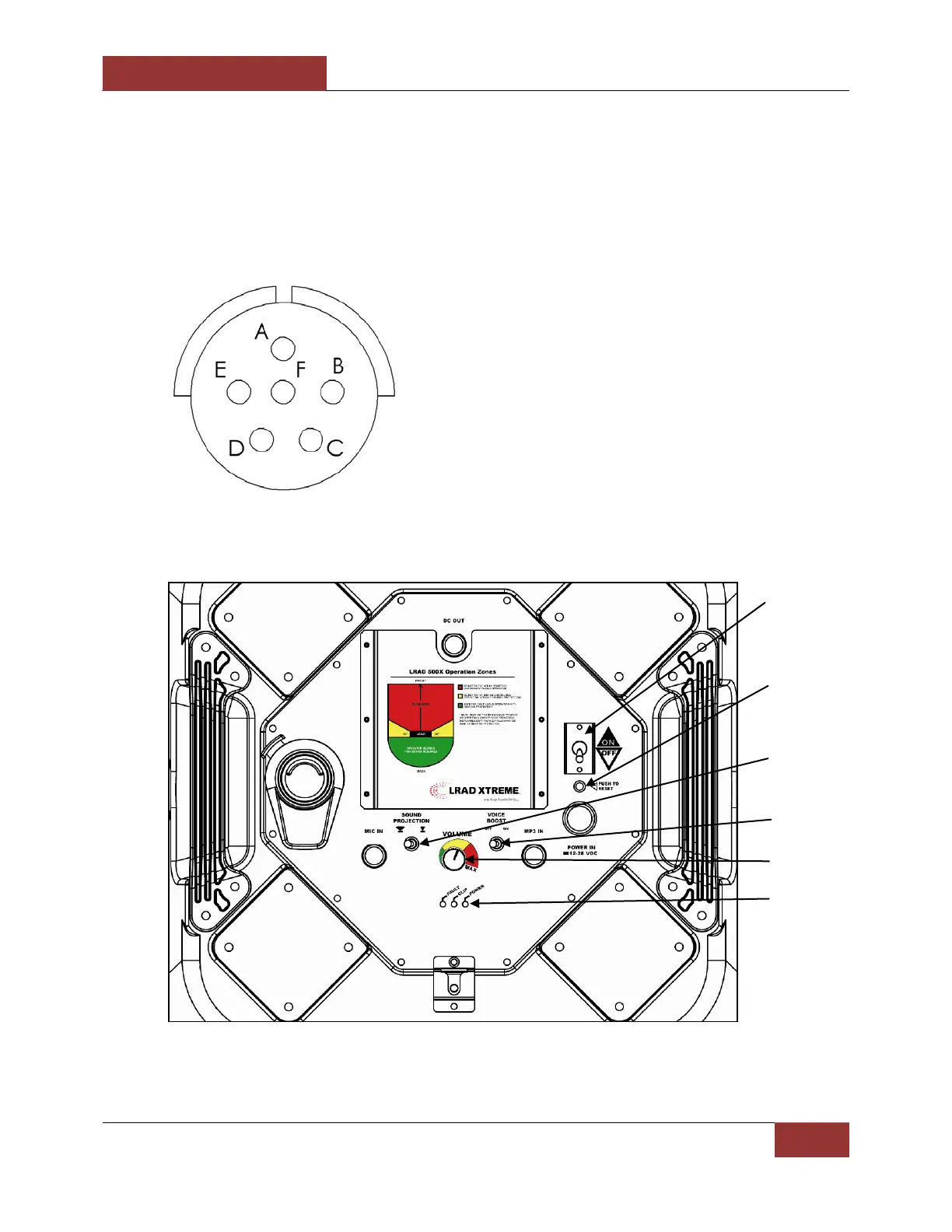 LRAD 500X - Rear Panel Controls and Indicators; Main power switch; Resettable breaker; Sound Projection switch