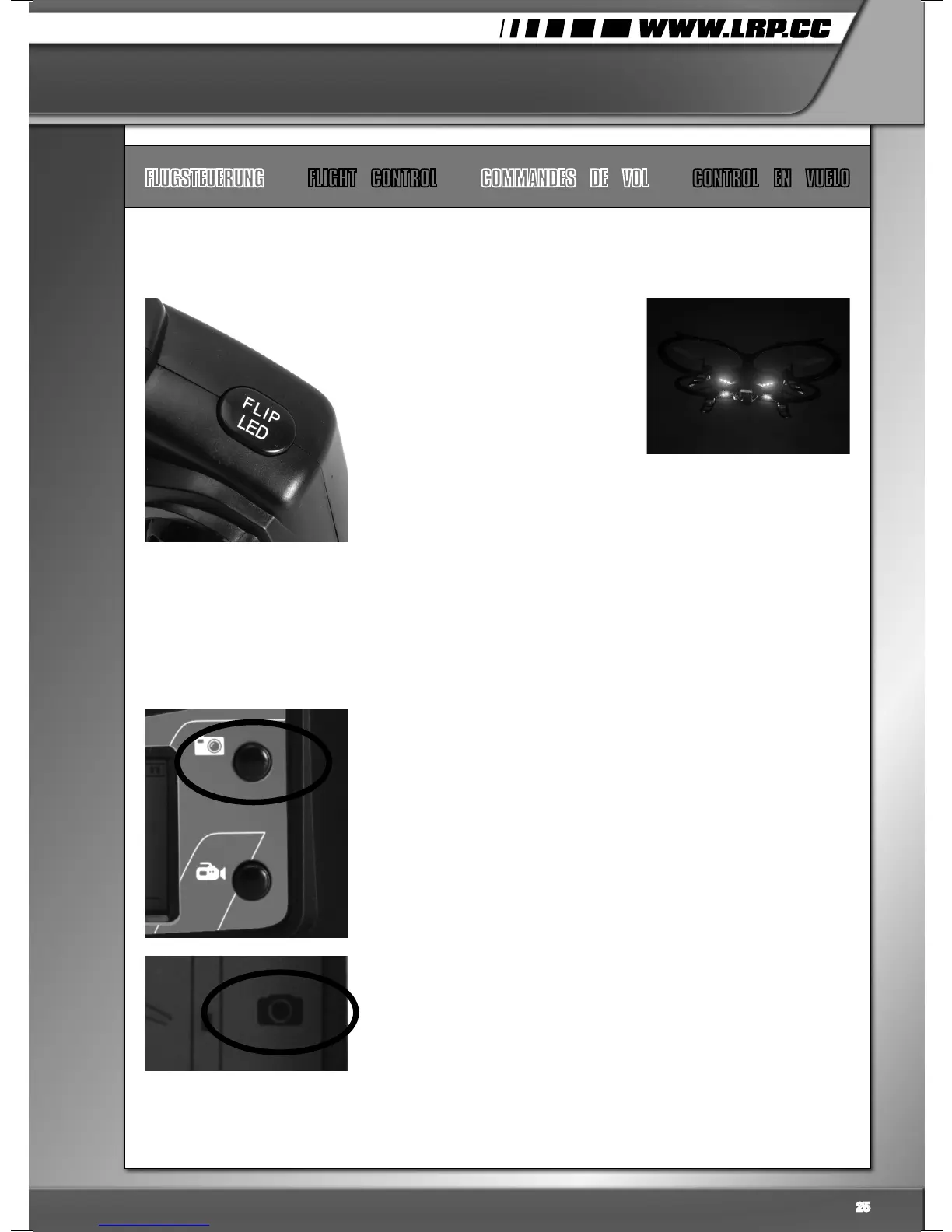 By pressing the photo button of your transmitter shortly, you can take a picture with
