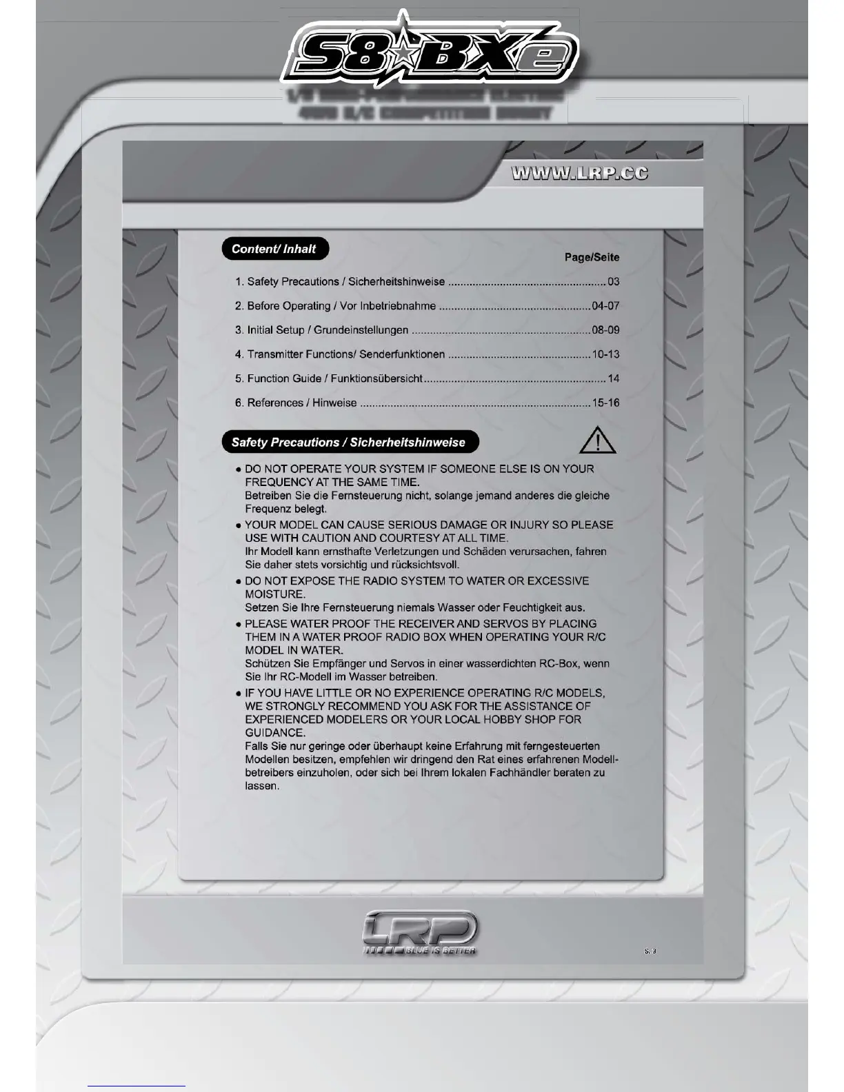 LRP S8 BXe - Transmitter Safety Precautions