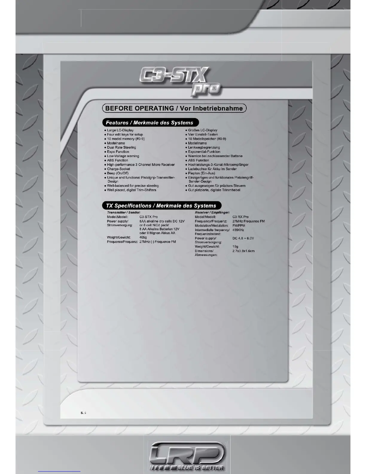 LRP S8 BXe - Transmitter: Before Operation; System Features and Specifications