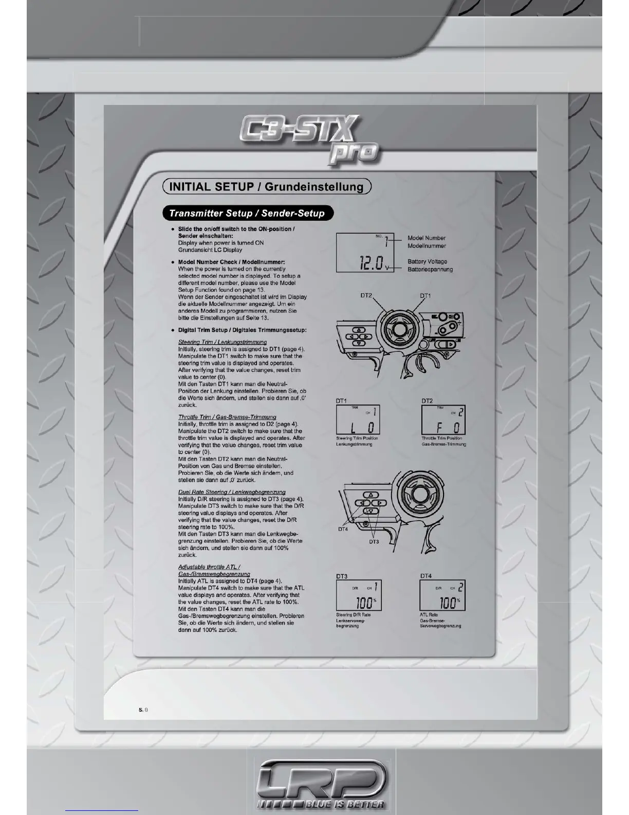 LRP S8 BXe - Initial Setup Procedures; Transmitter Setup and Basic Adjustments