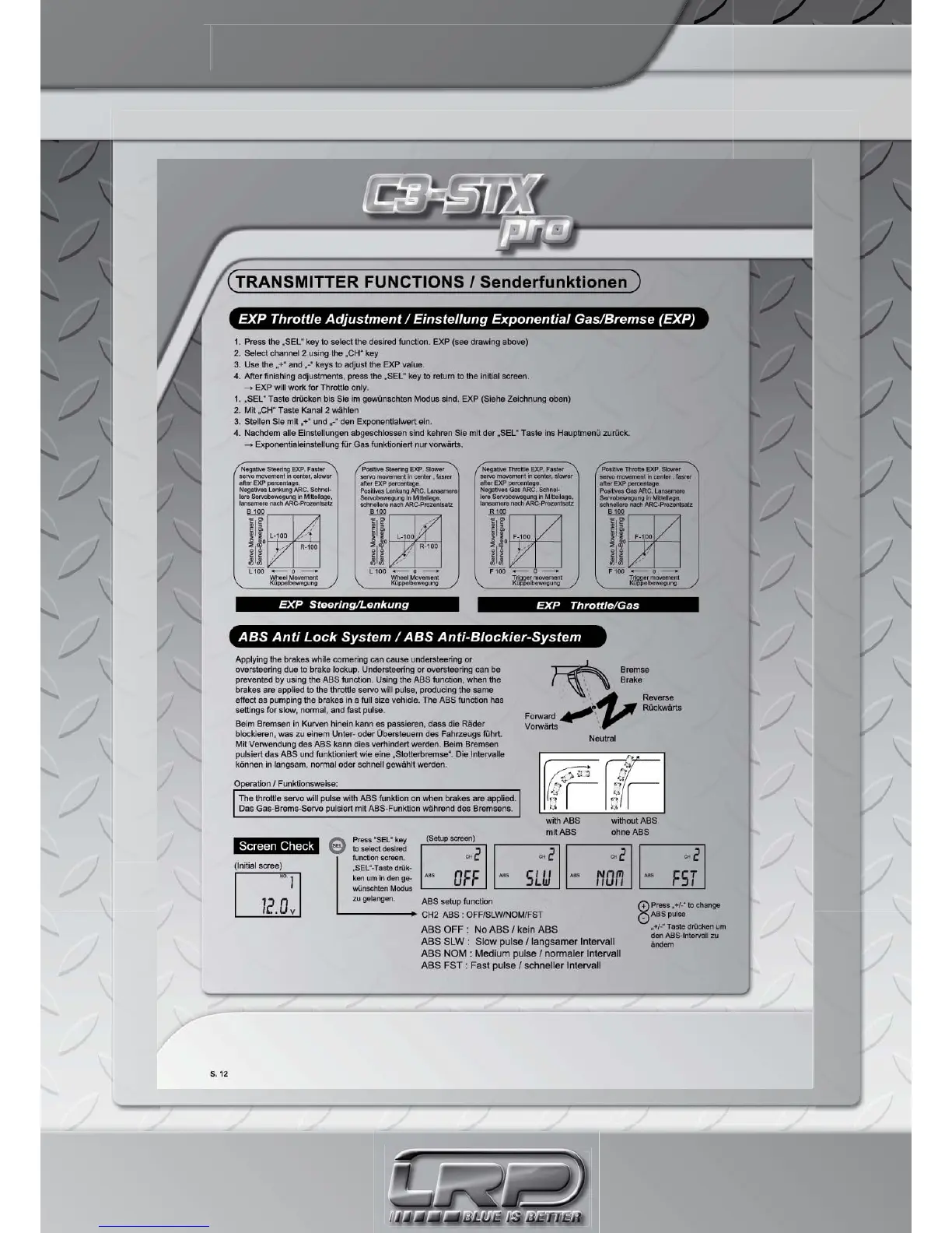 LRP S8 BXe - Transmitter Functions: EXP and ABS; EXP Throttle Adjustment; ABS Anti Lock System