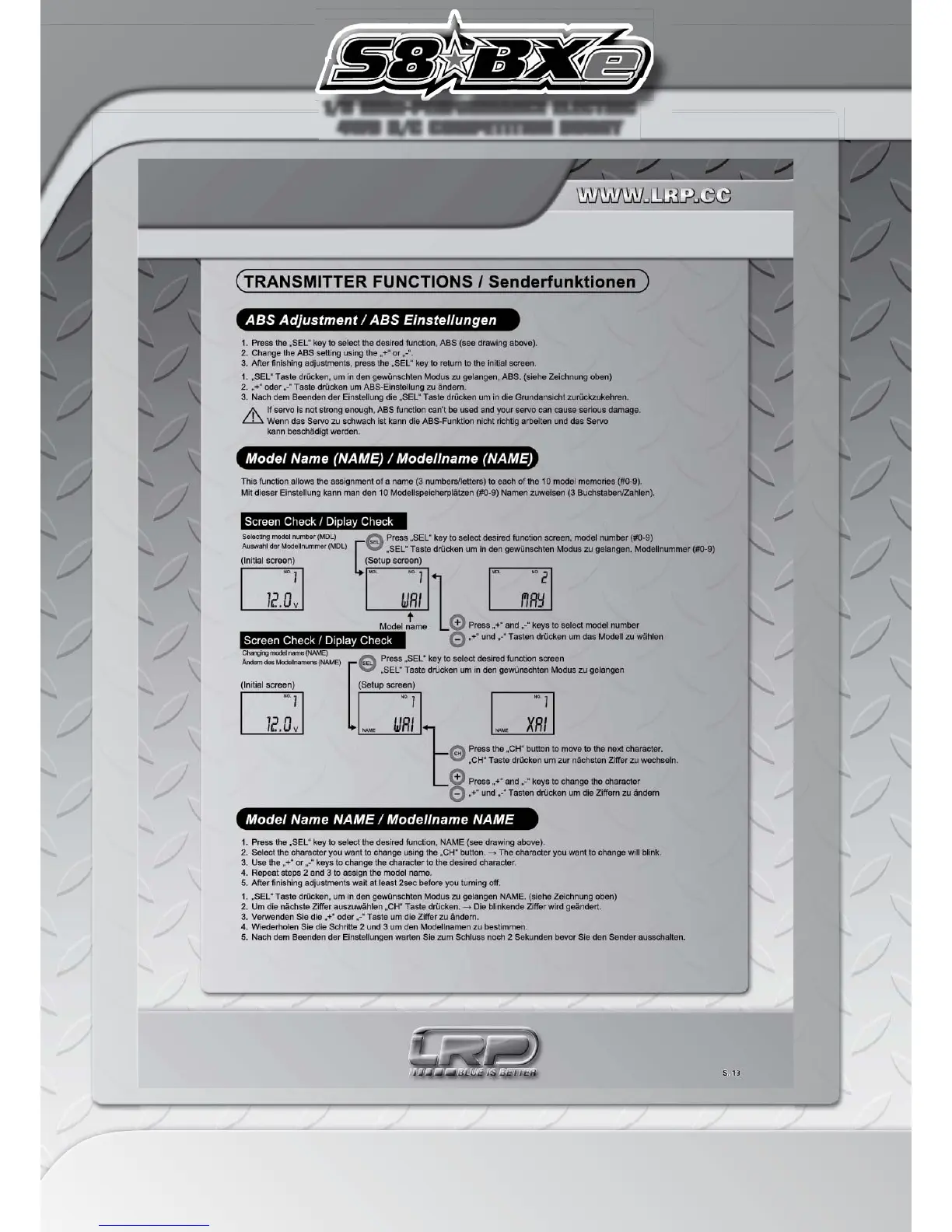 LRP S8 BXe - Transmitter Functions: ABS and Model Name; ABS Adjustment; Model Name Setup