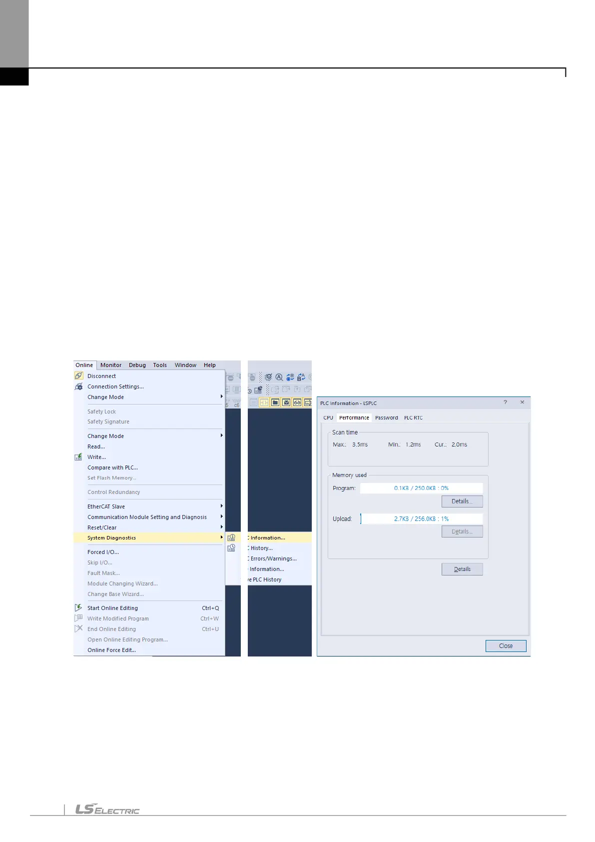 (a) Scan time can be monitored 『Online』-『PLC Information』-『Performance』.