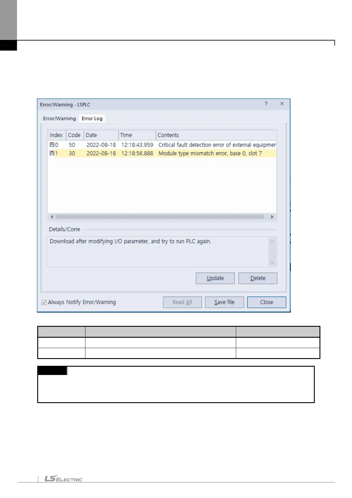 CPU module logs errors occurred so that the causes will be identified and fixed easily. Clicking