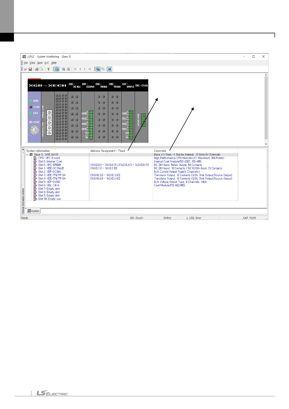 In case of using monitor function of XG5000, I/O allocation information is displayed.