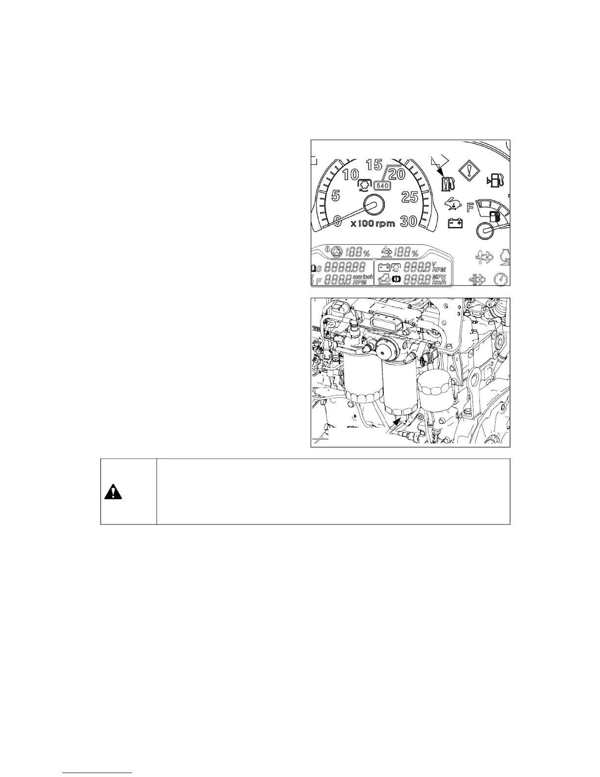 z Check if the fuel filter warning indicator is turned