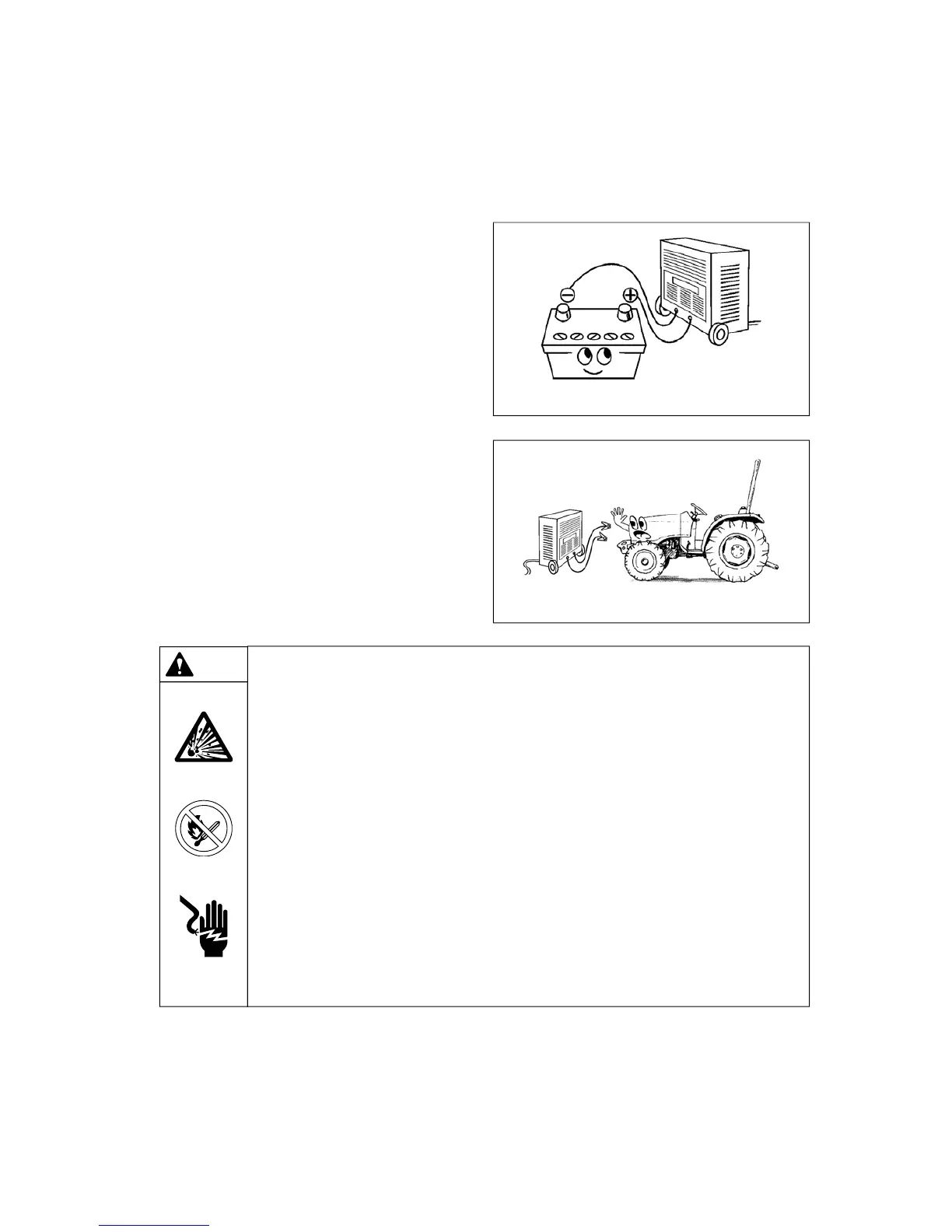 ▶Detach battery from the tractor before charging. DO NOT charge directly while the