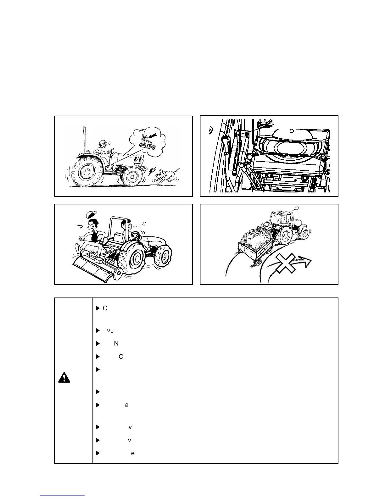 While traveling, DO NOT operate any implement such as tiller, loader etc.