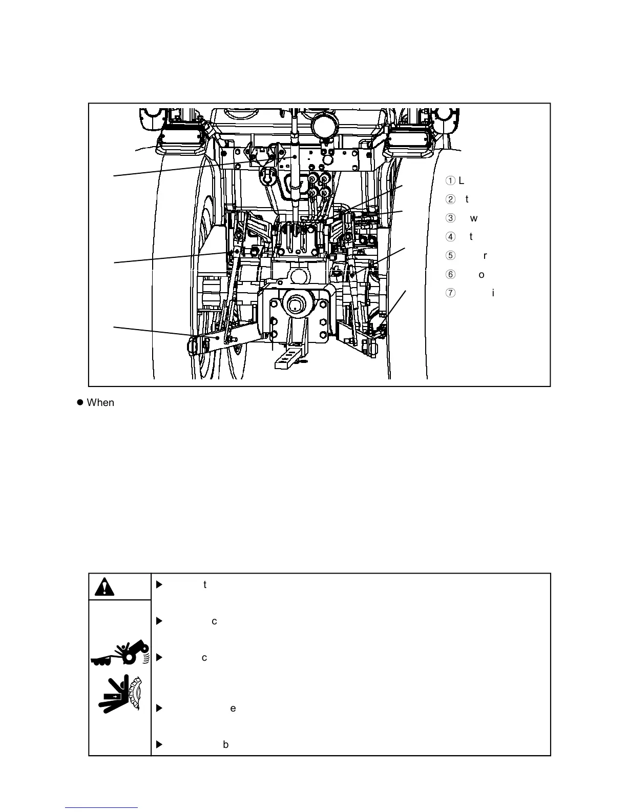 to avoid injury. Never connect to lower link or upper link of the 3-point linkage. If not,