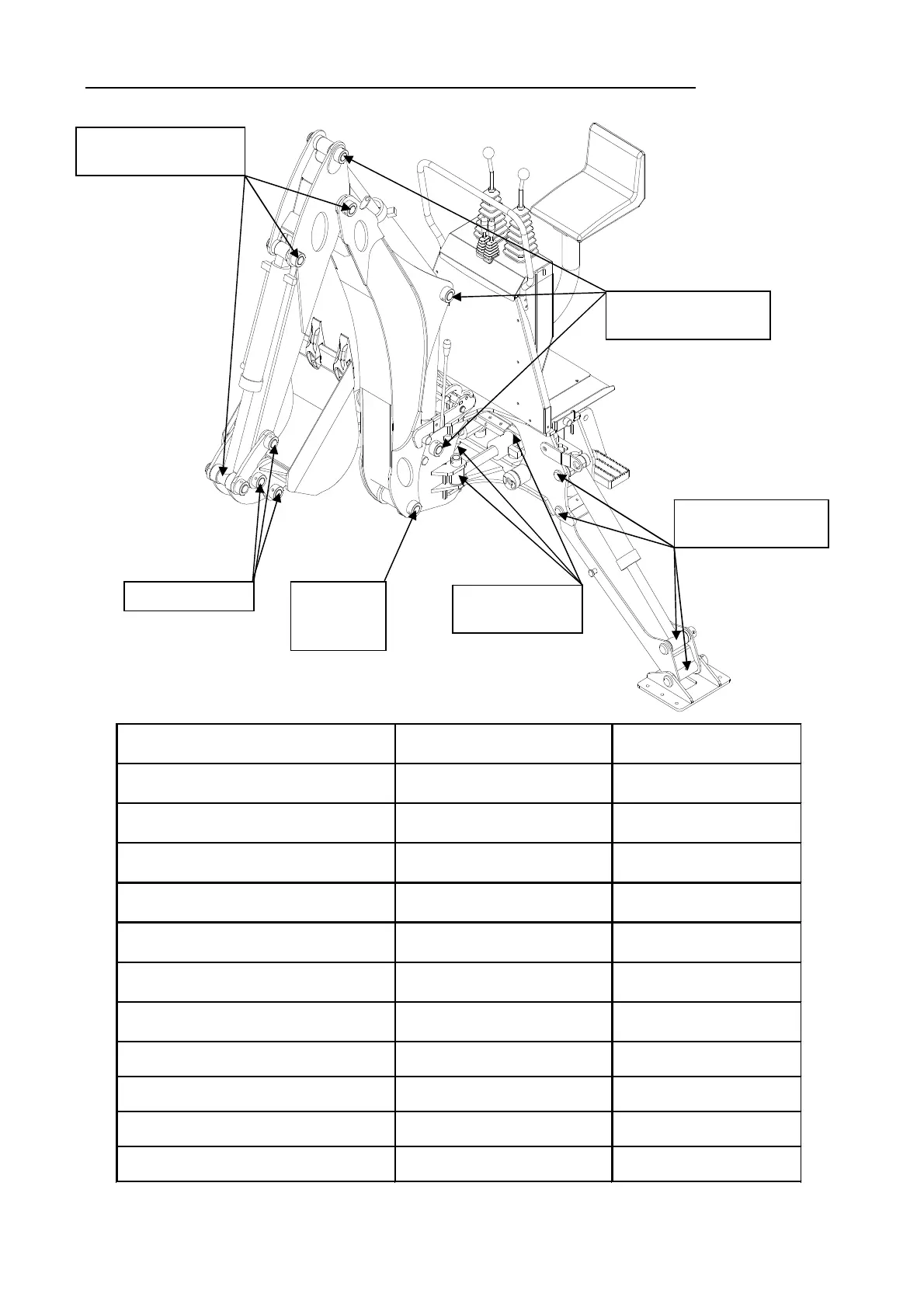Backhoe Pivot Points Lubricate Daily/10 hours