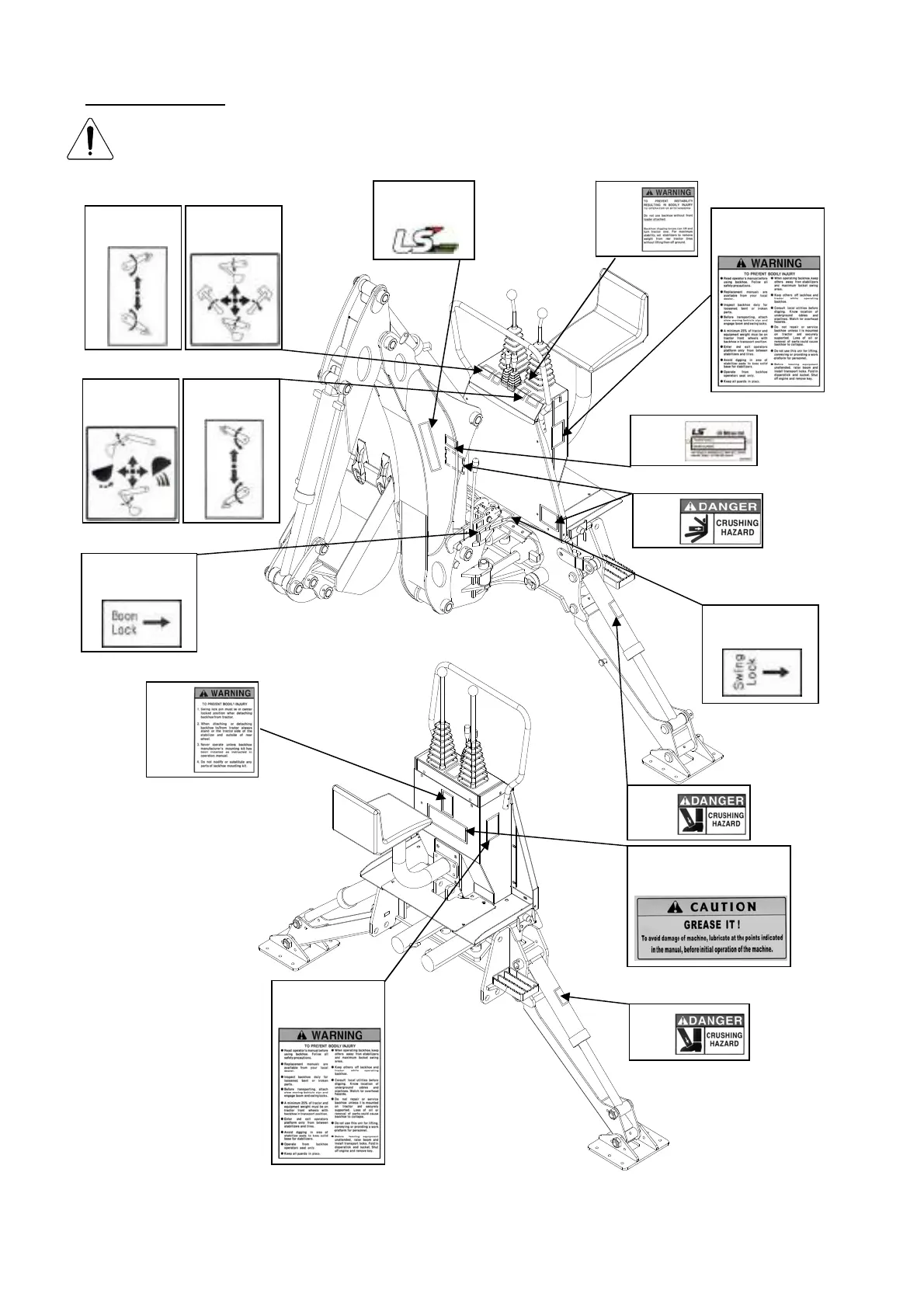 LS tractor LB1100 Series - DECALS; Decal Locations and Types
