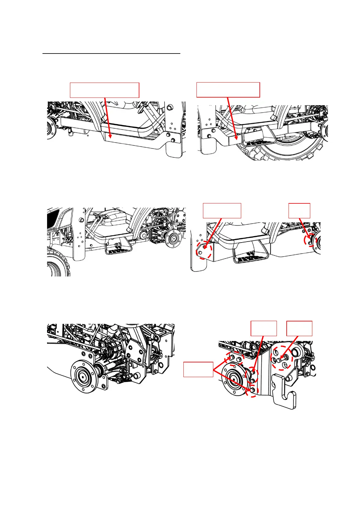 1. Uninstall the left-hand & right-hand Back axle for loader mount on the tractor frame.