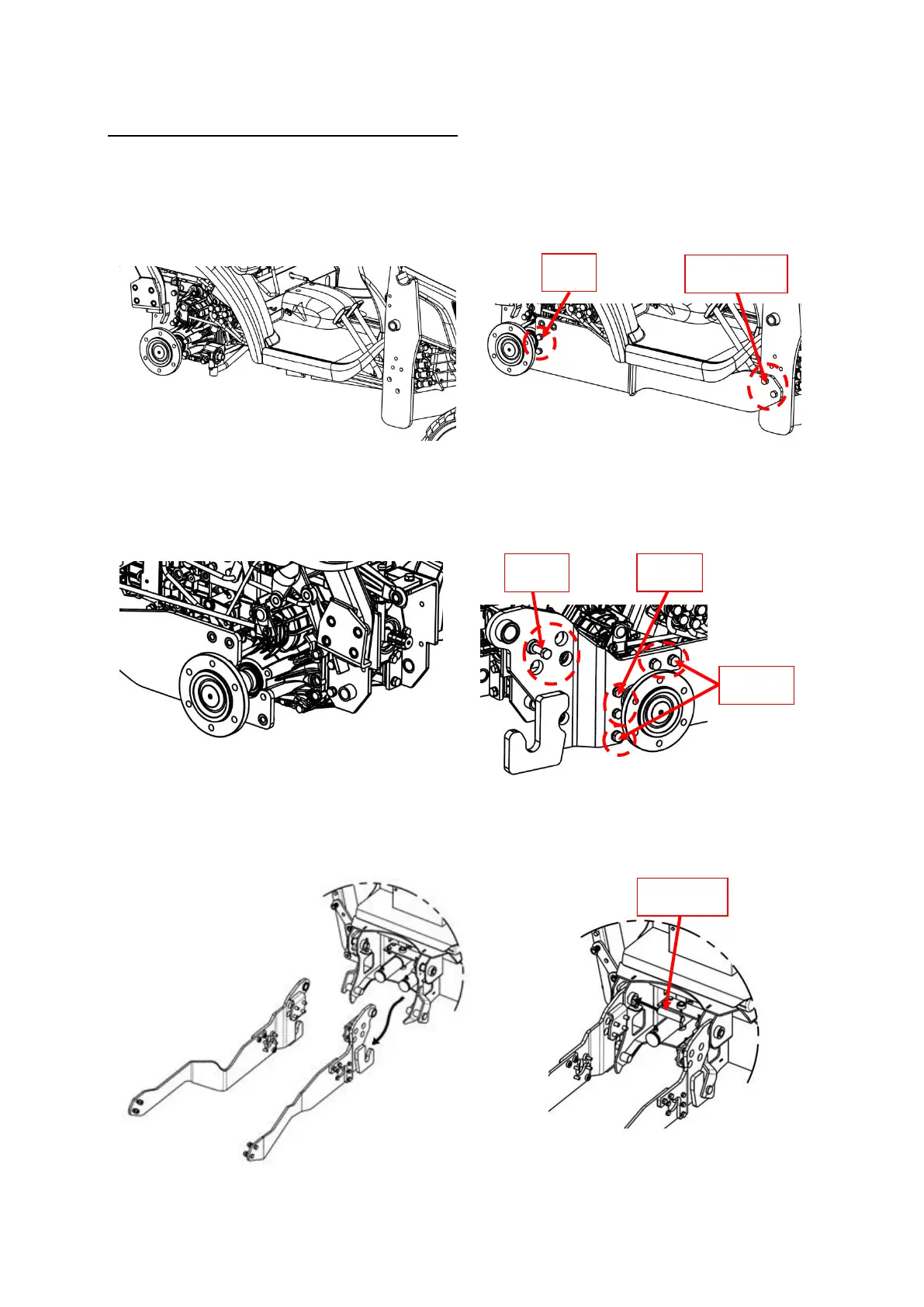 4. Install the right-hand Rear plate CP LH mount on the right-hand tractor frame & loader frame, secure with