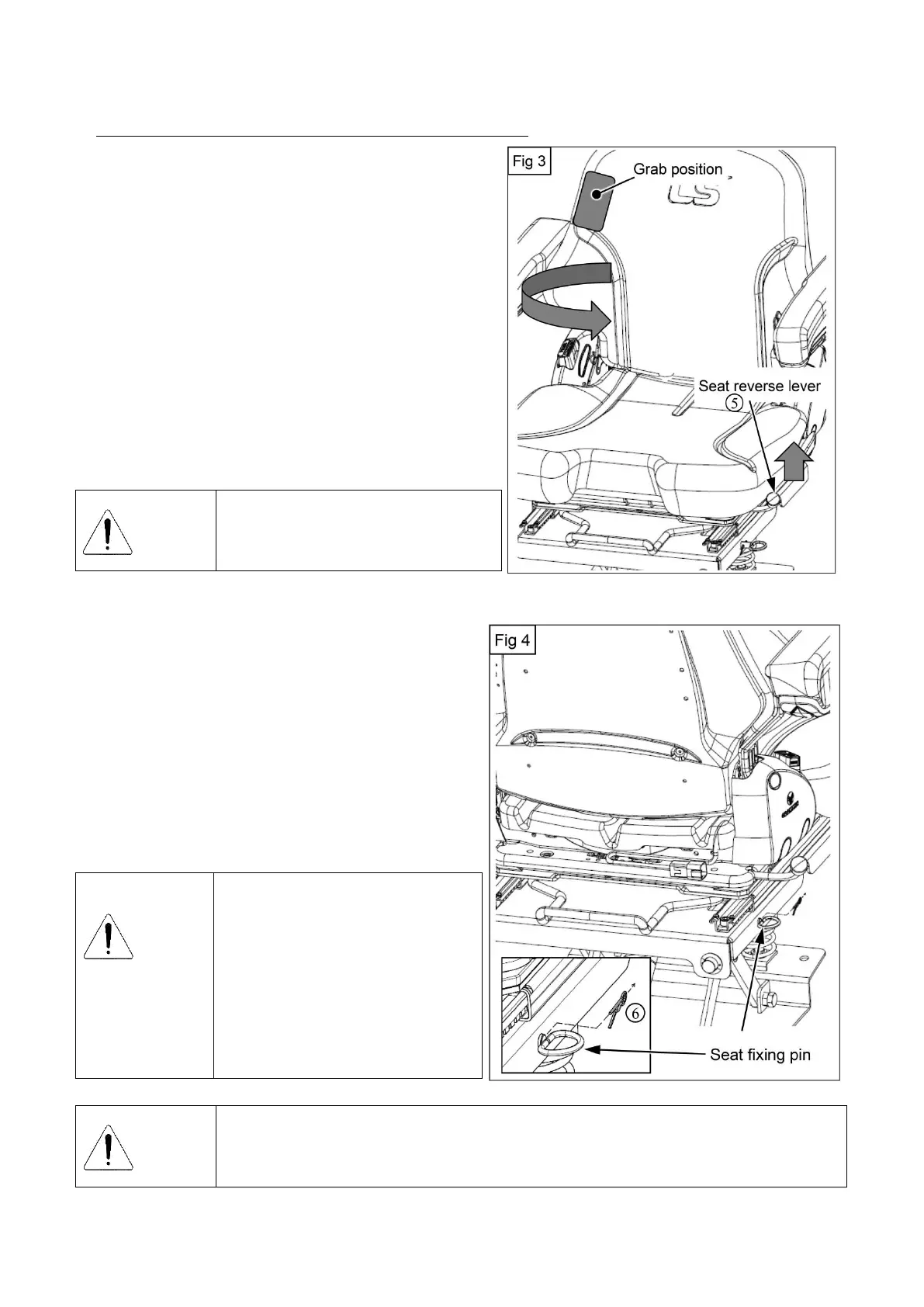 4) Lift up the seat reverse lever ⑤ with hand and rotate