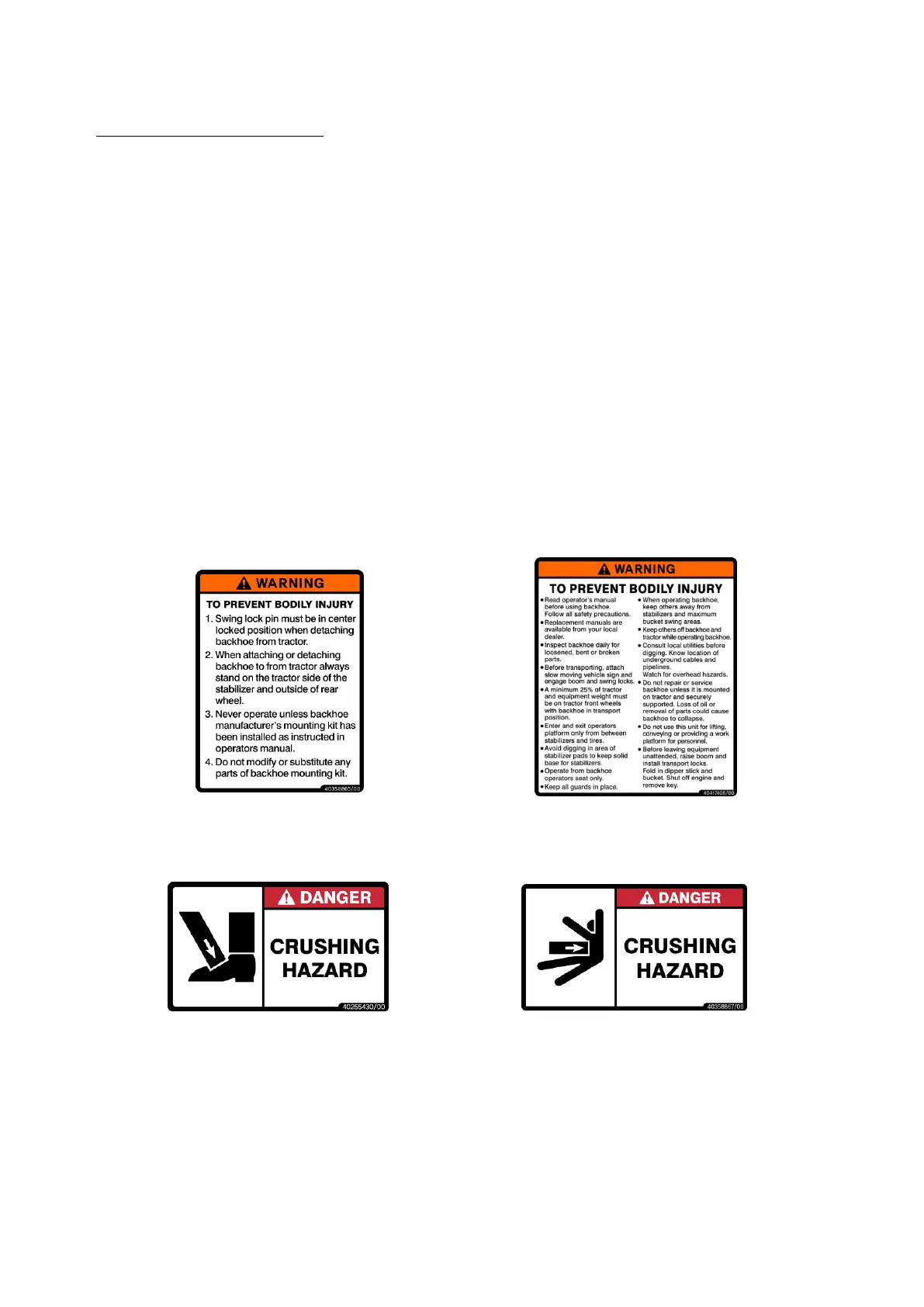 Important: Warning decals are visible when getting on backhoe. Refer to the left and right hands