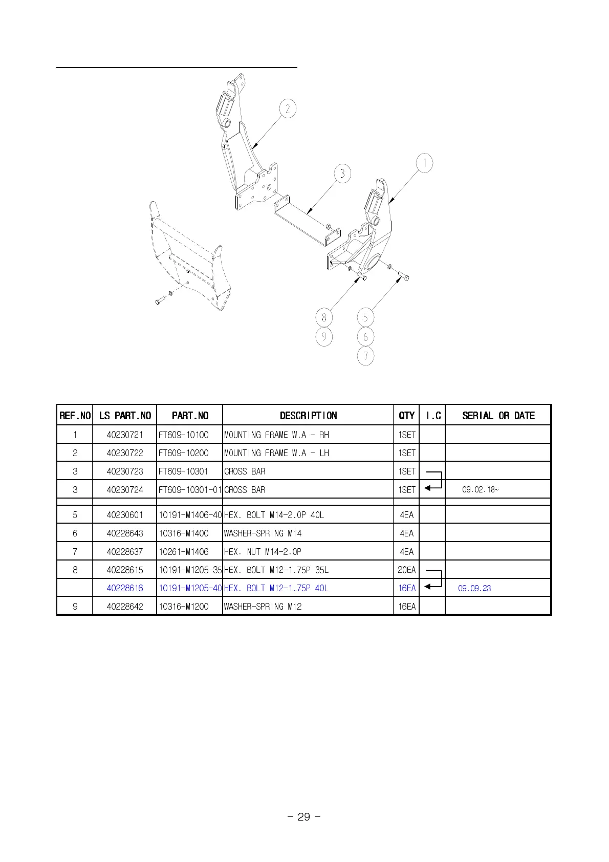 2 40230722 FT609-10200 MOUNTING FRAME W.A - LH 1SET