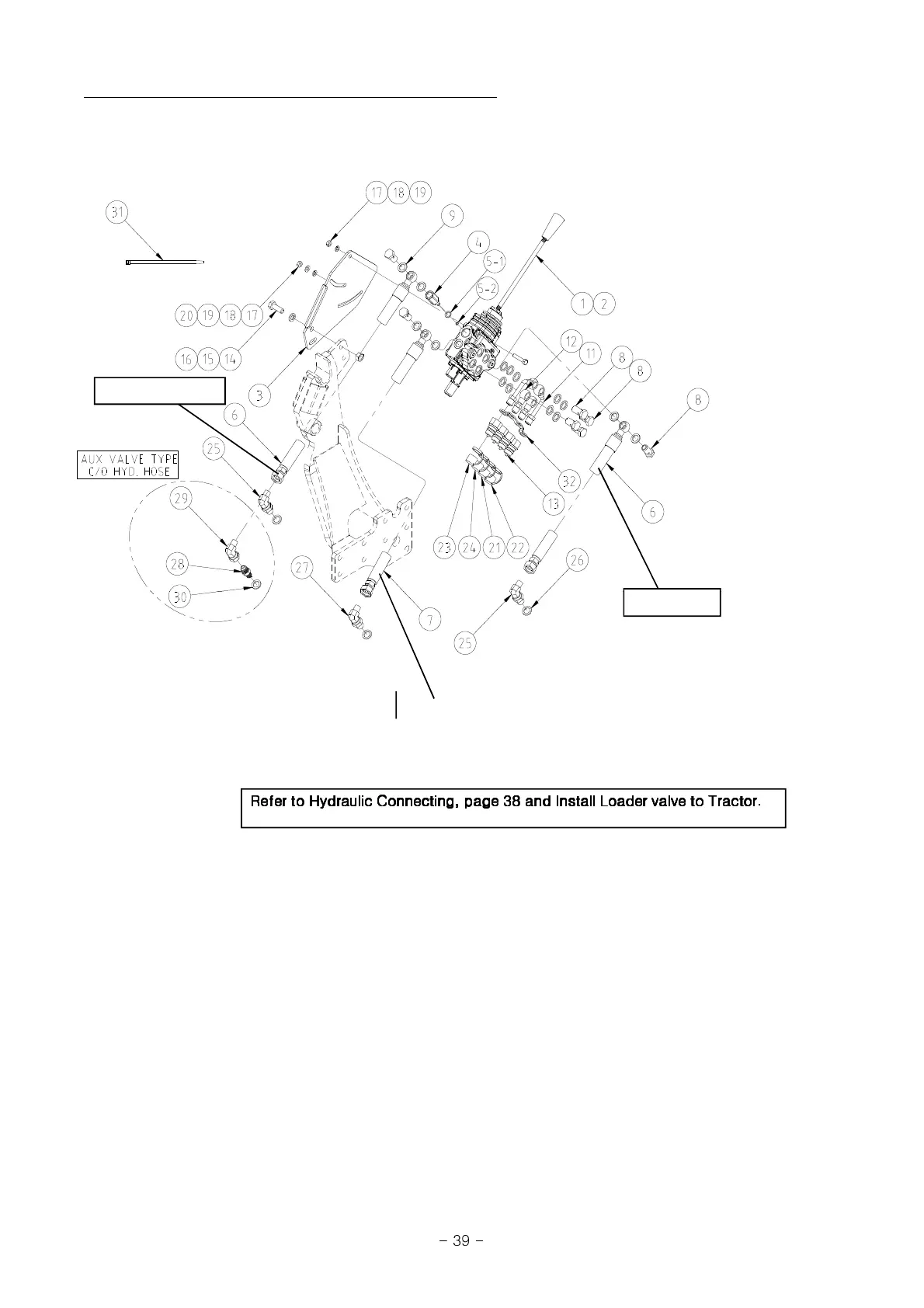 38 and Install Loader valve to Tractor.