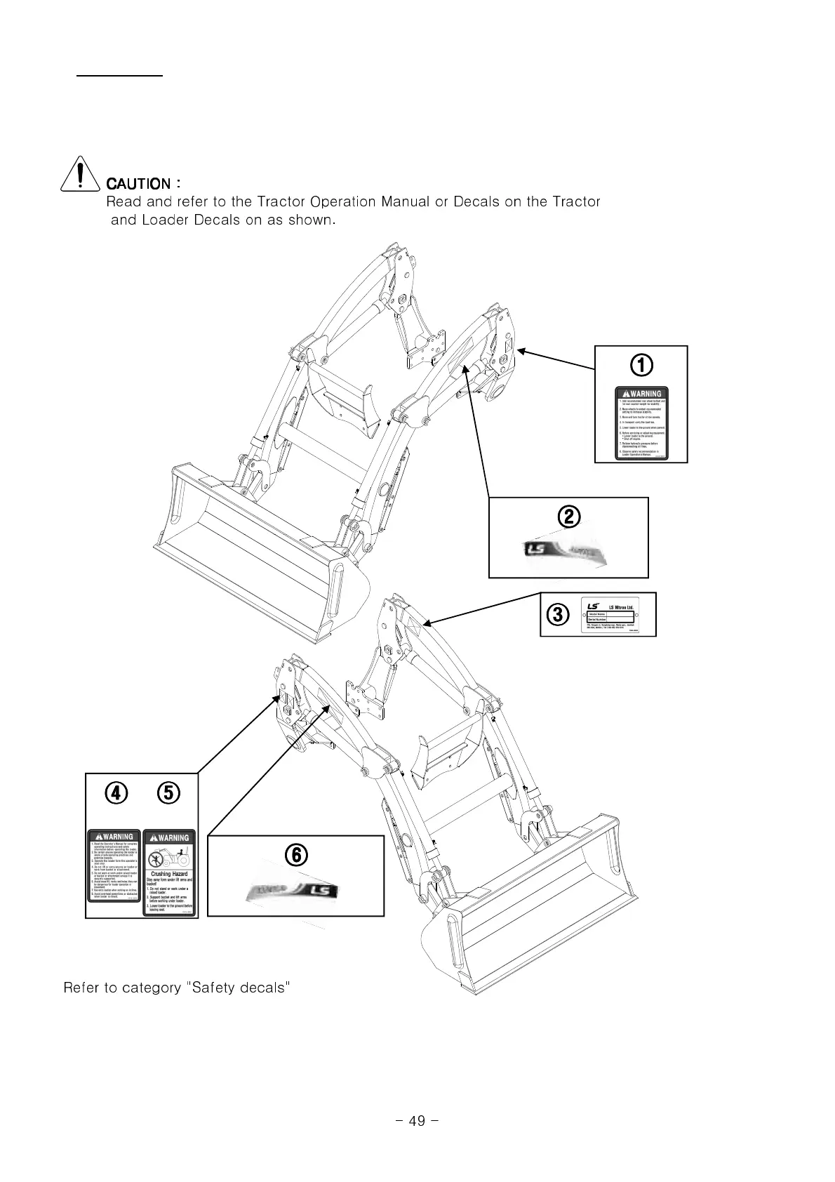 LS tractor LL2100 - DECALS; Caution: Refer to Decals