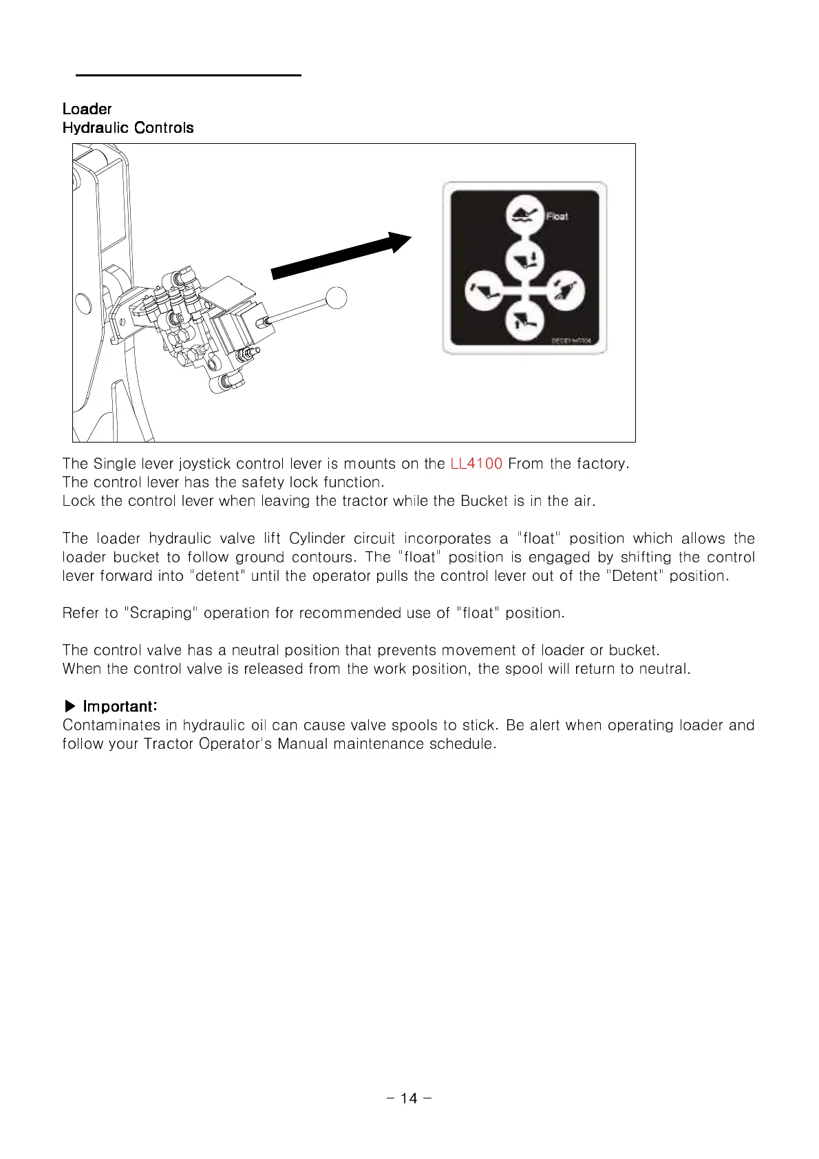 loader bucket to follow ground contours. The "float" position is engaged by shifting the control