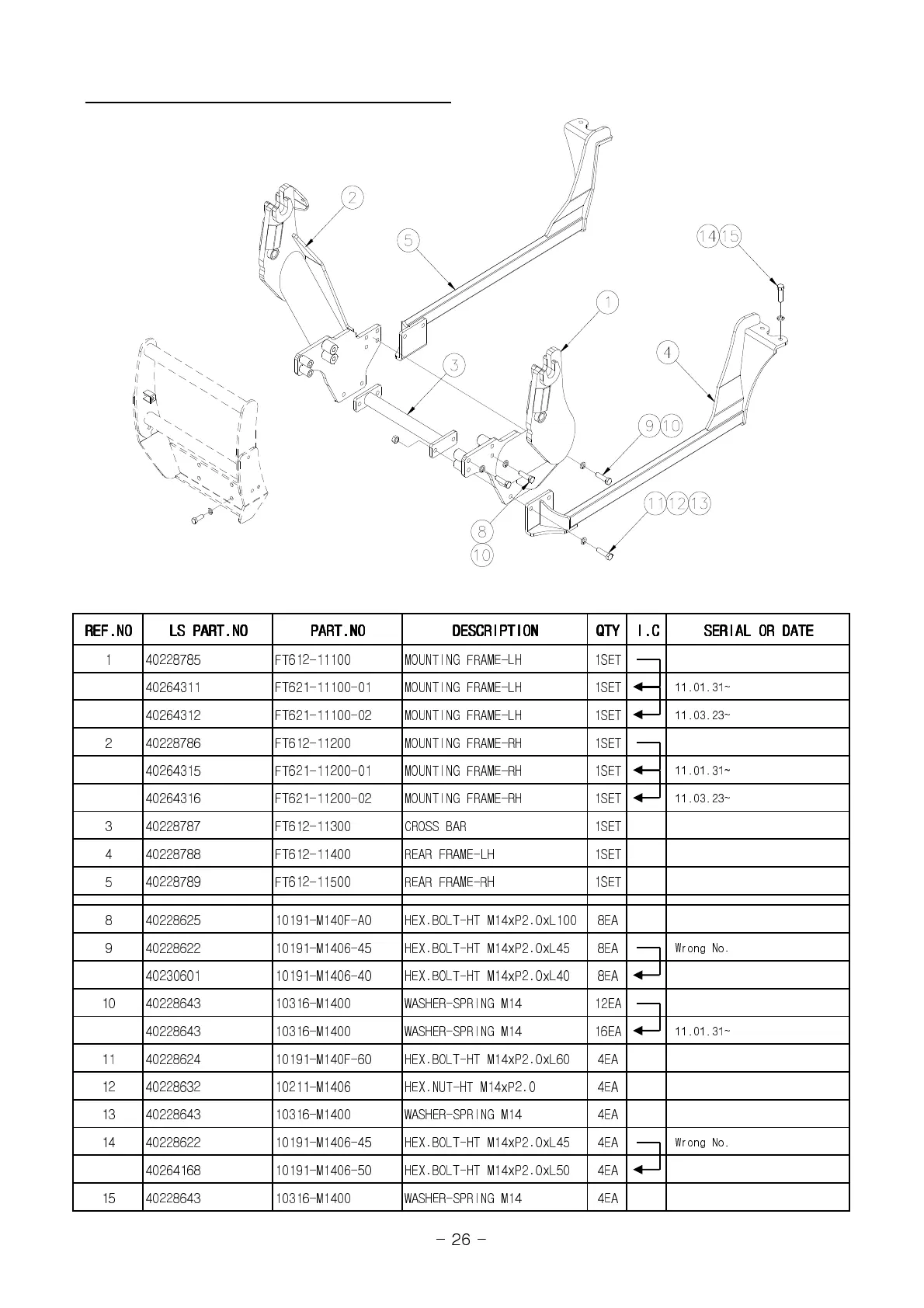 1 40228785 FT612-11100 MOUNTING FRAME-LH 1SET