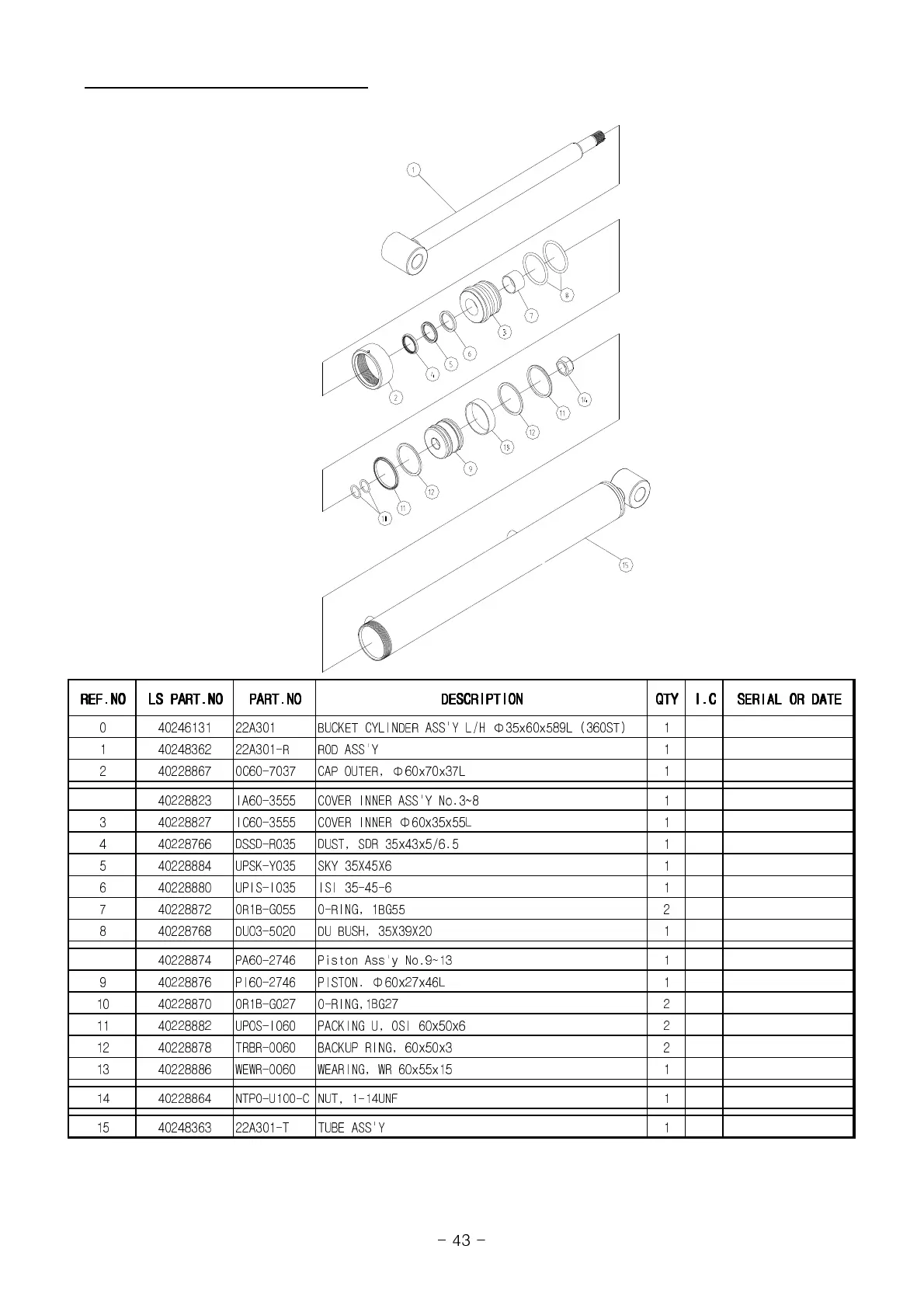 0 40246131 22A301 BUCKET CYLINDER ASS'Y L/H Φ35x60x589L (360ST) 1