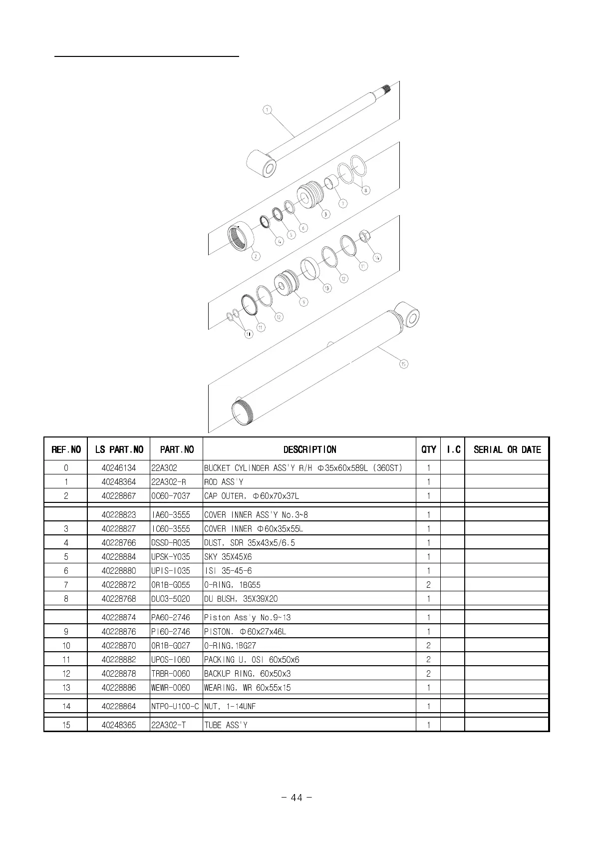 0 40246134 22A302 BUCKET CYLINDER ASS'Y R/H Φ35x60x589L (360ST) 1