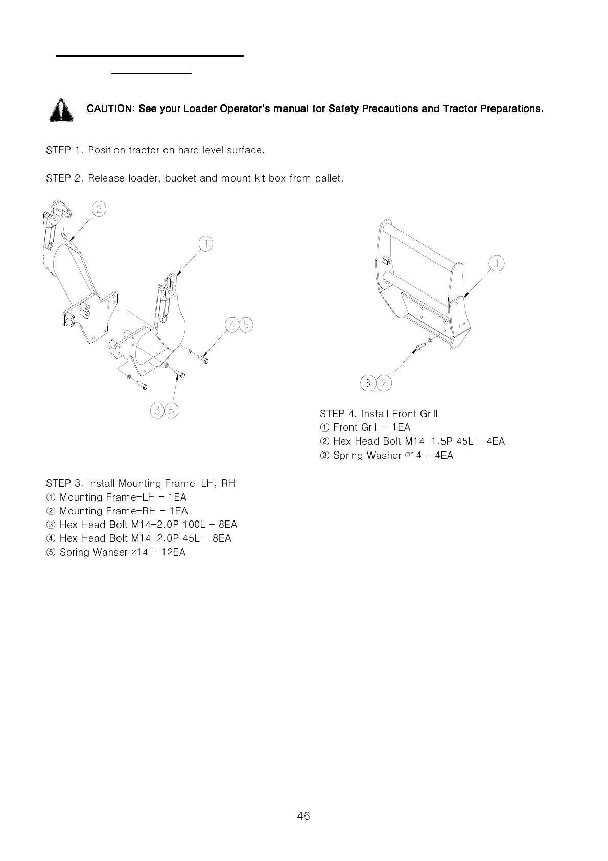 CAUTION: See your Loader Operator's manual for Safety Precautions and Tractor Preparations.