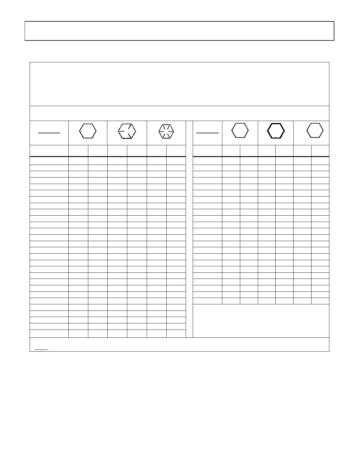 TORQUE SPECIFICATION TABLE