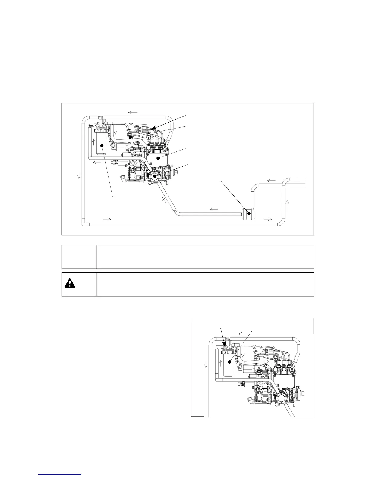 ▶ HIGH PRESSURE FUEL. When the engine is running, do not loosen the fuel