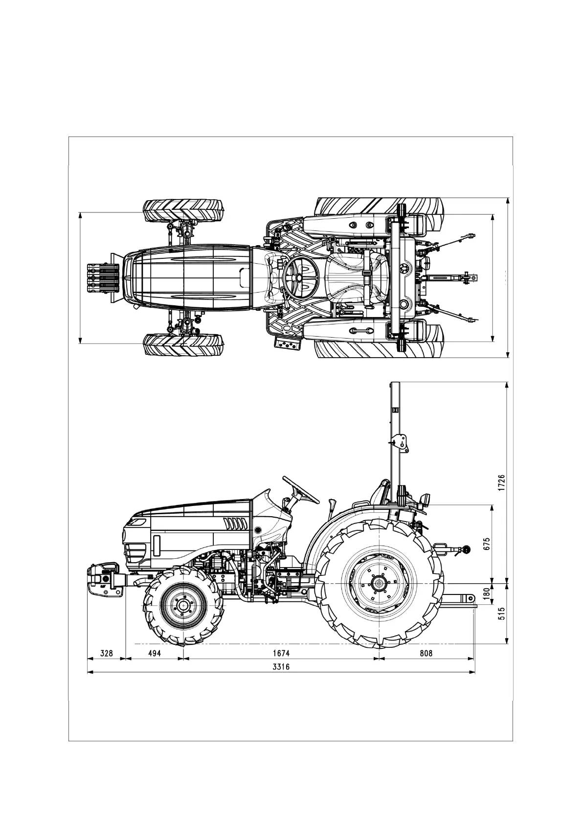 LS tractor MT225HE - Dimension and Specification