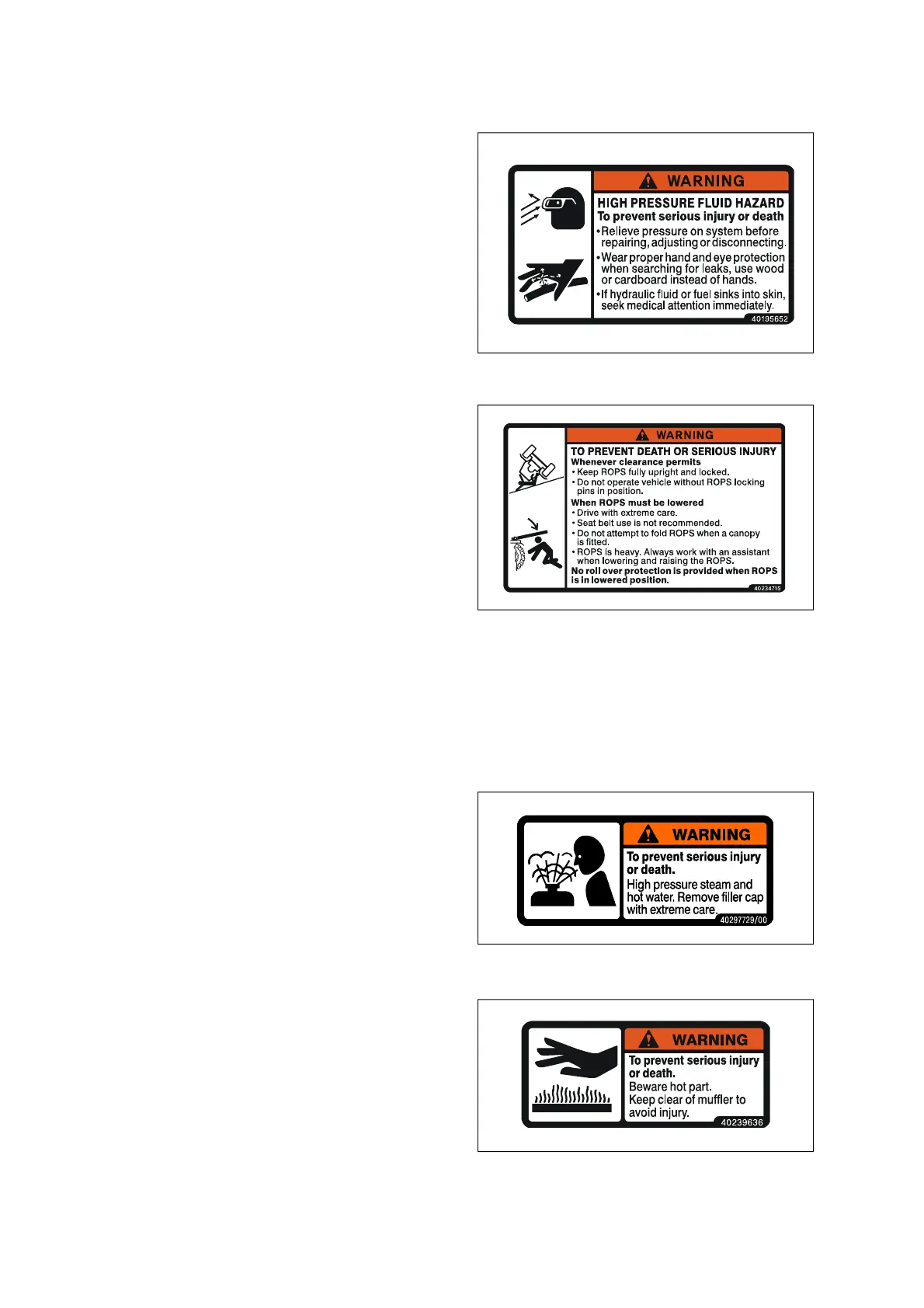 • Do not attempt to fold ROPS when a canopy