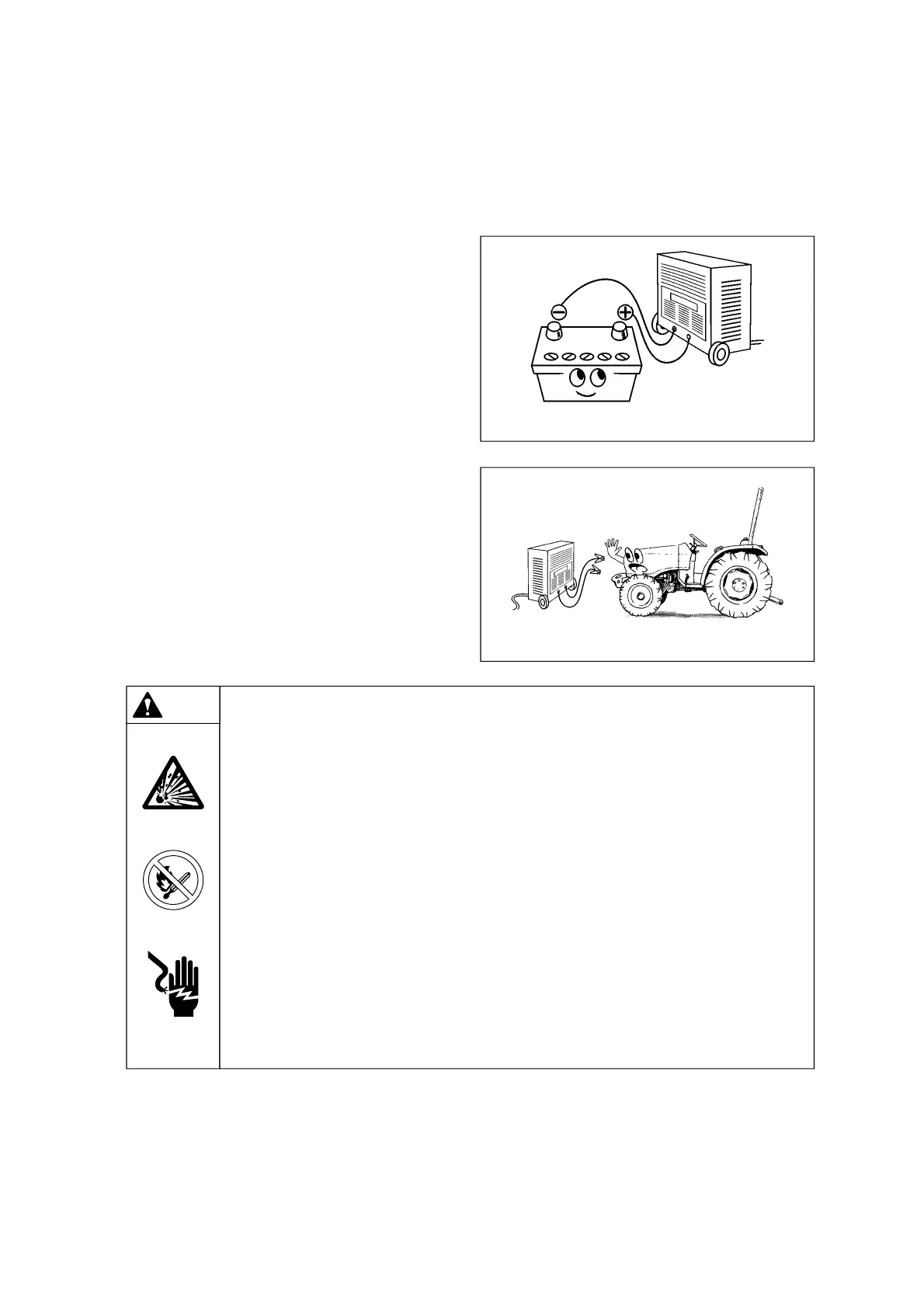 Detach battery from the tractor before charging. DO NOT charge directly while the