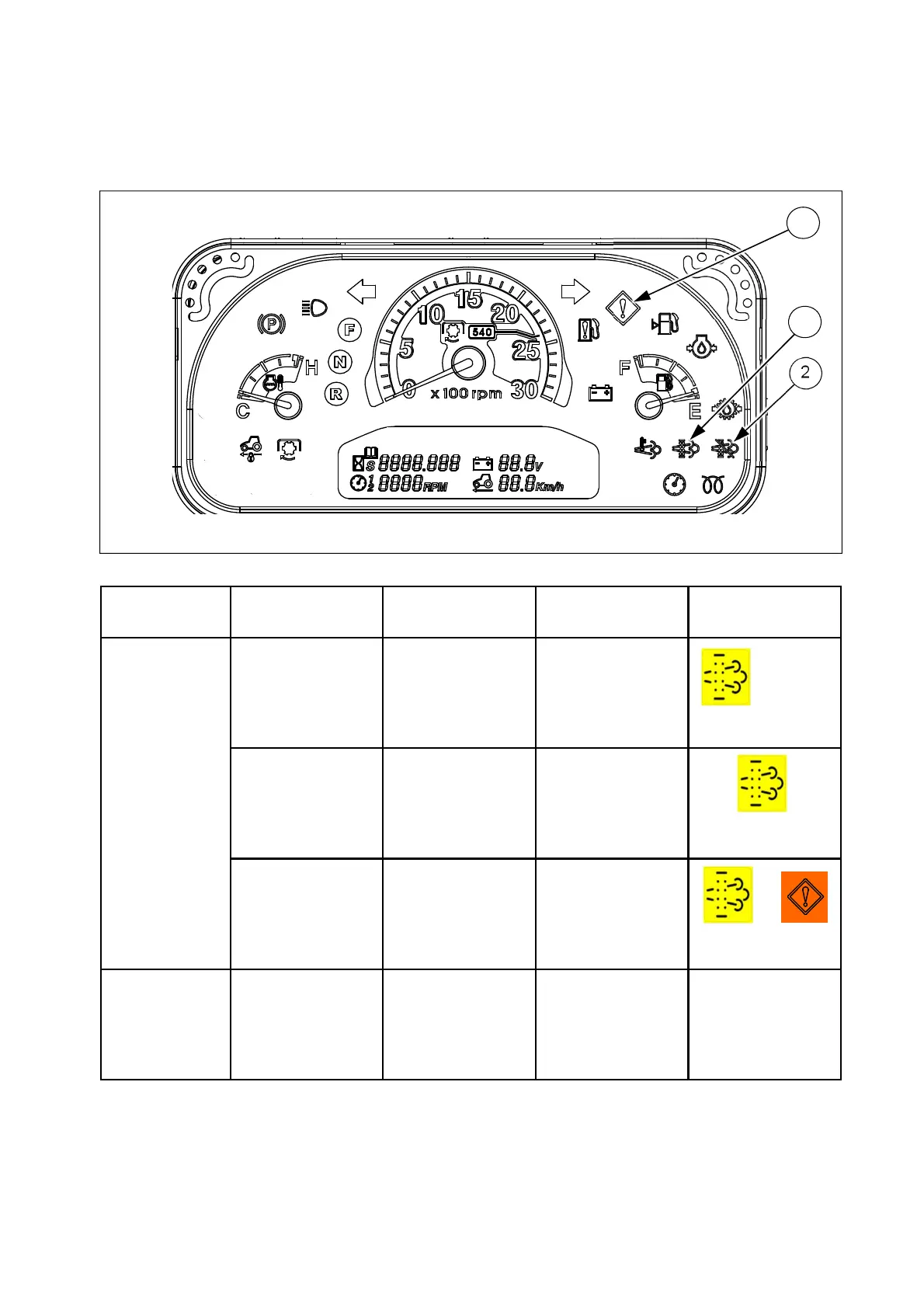 The indicators related to the DPF regeneration have several illumination figures and its meanings