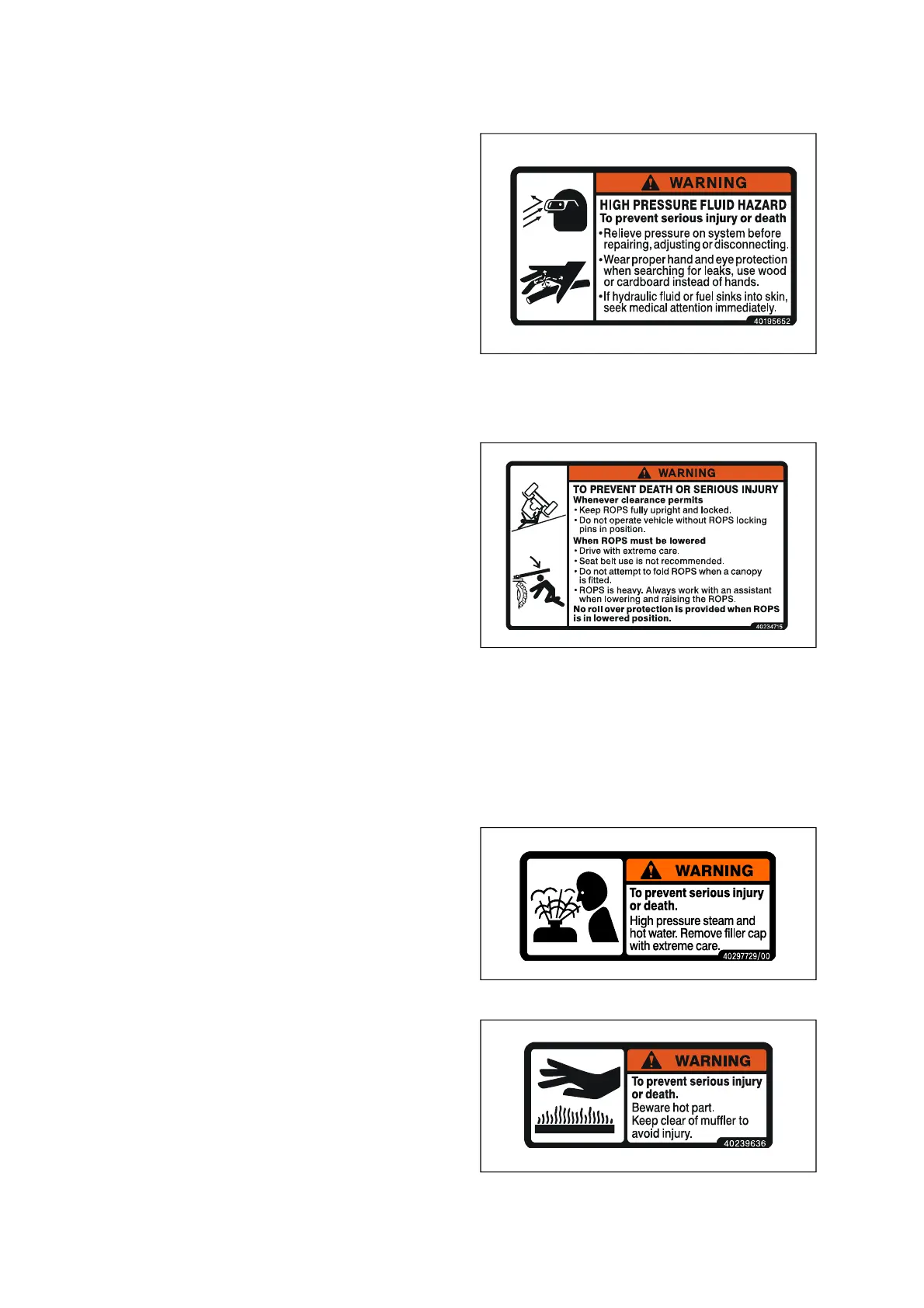 • Do not attempt to fold ROPS when a canopy