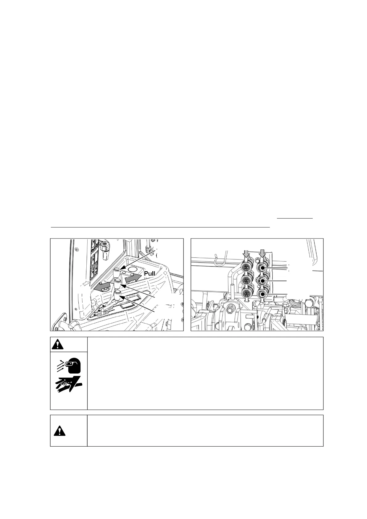 ▶Before connecting or disconnecting the hydraulic quick couplers, lower the