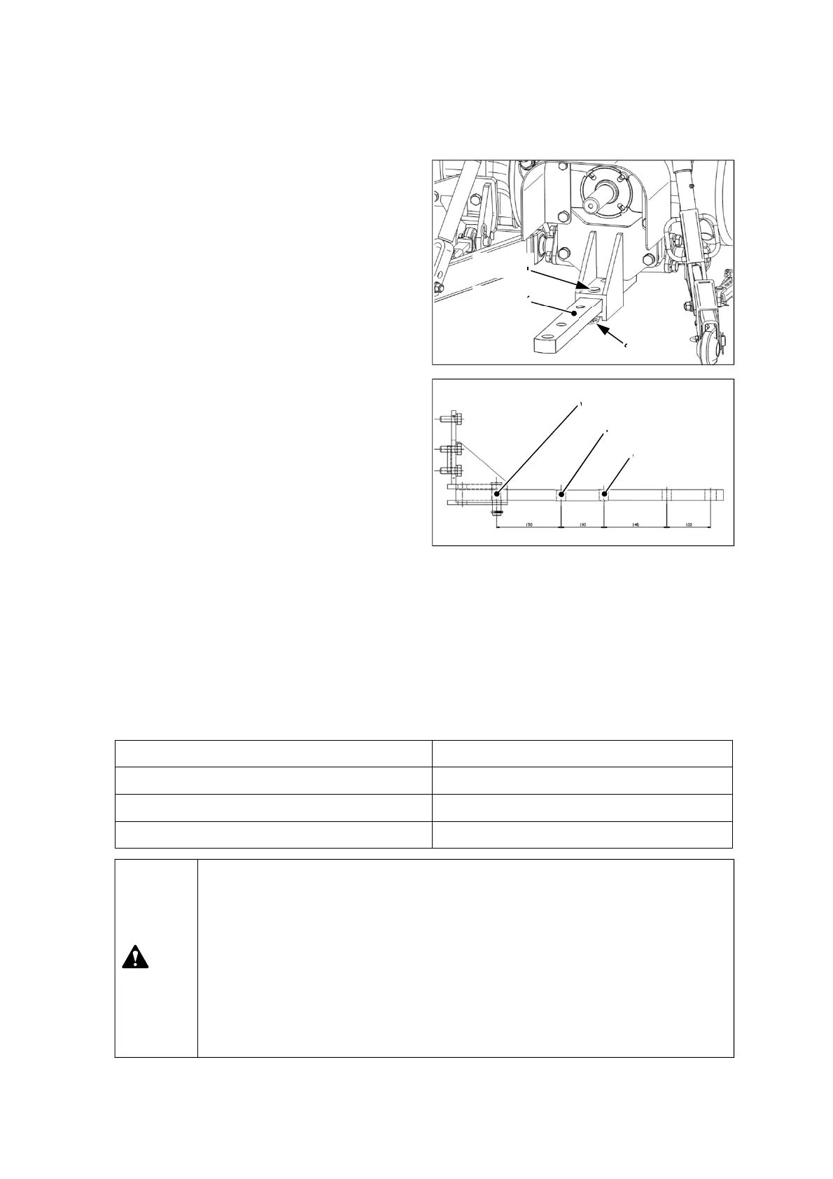 ▶ Use always the drawbar or hitch for pulling work. DO NOT use the 3-point linkage,