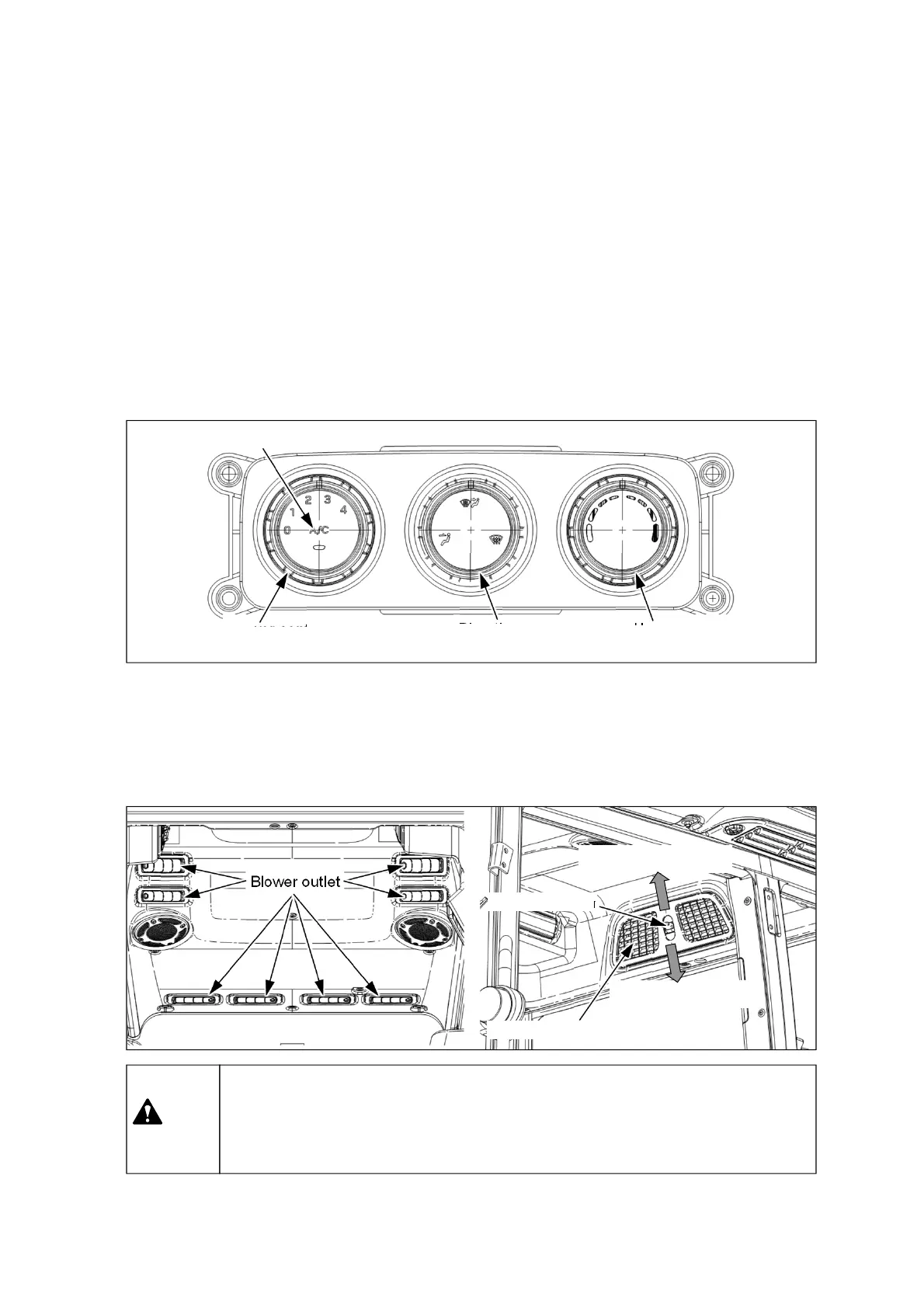 To control the air flow direction, adjust the blade angle of the blower outlets.