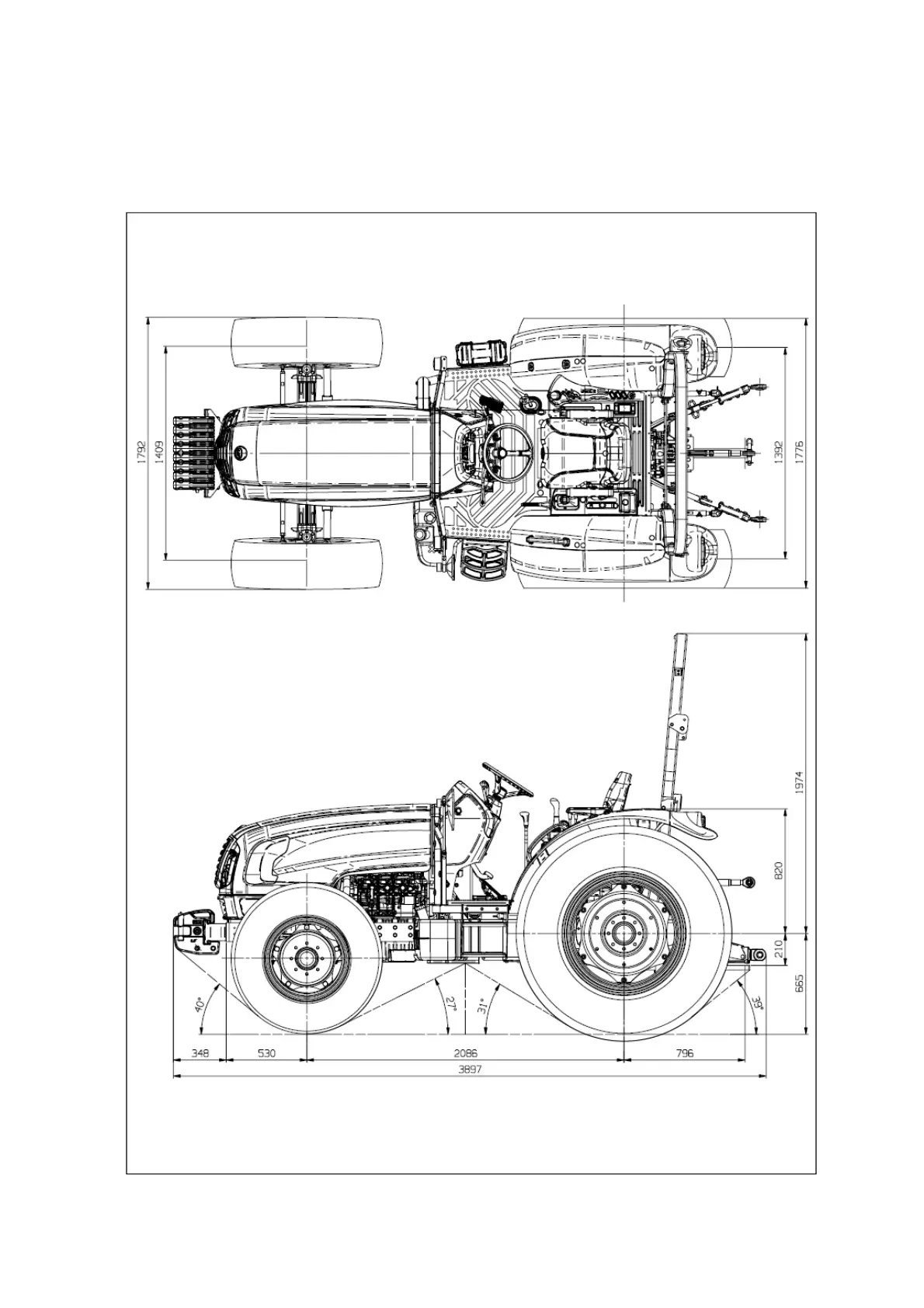 * When applying front tires : 11.2-20 8PR / rear tires : 14.9-30 8PR