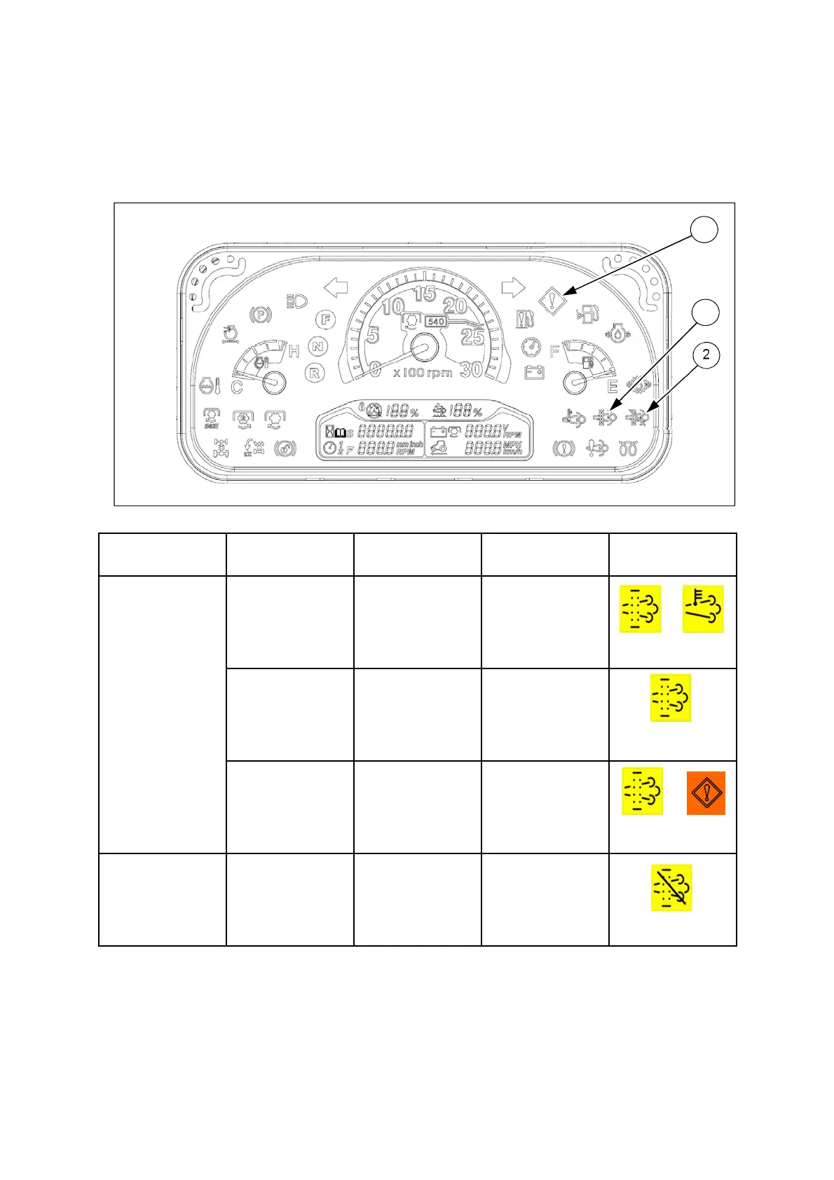 The indicators related to the DPF regeneration have several illumination figures and its meanings
