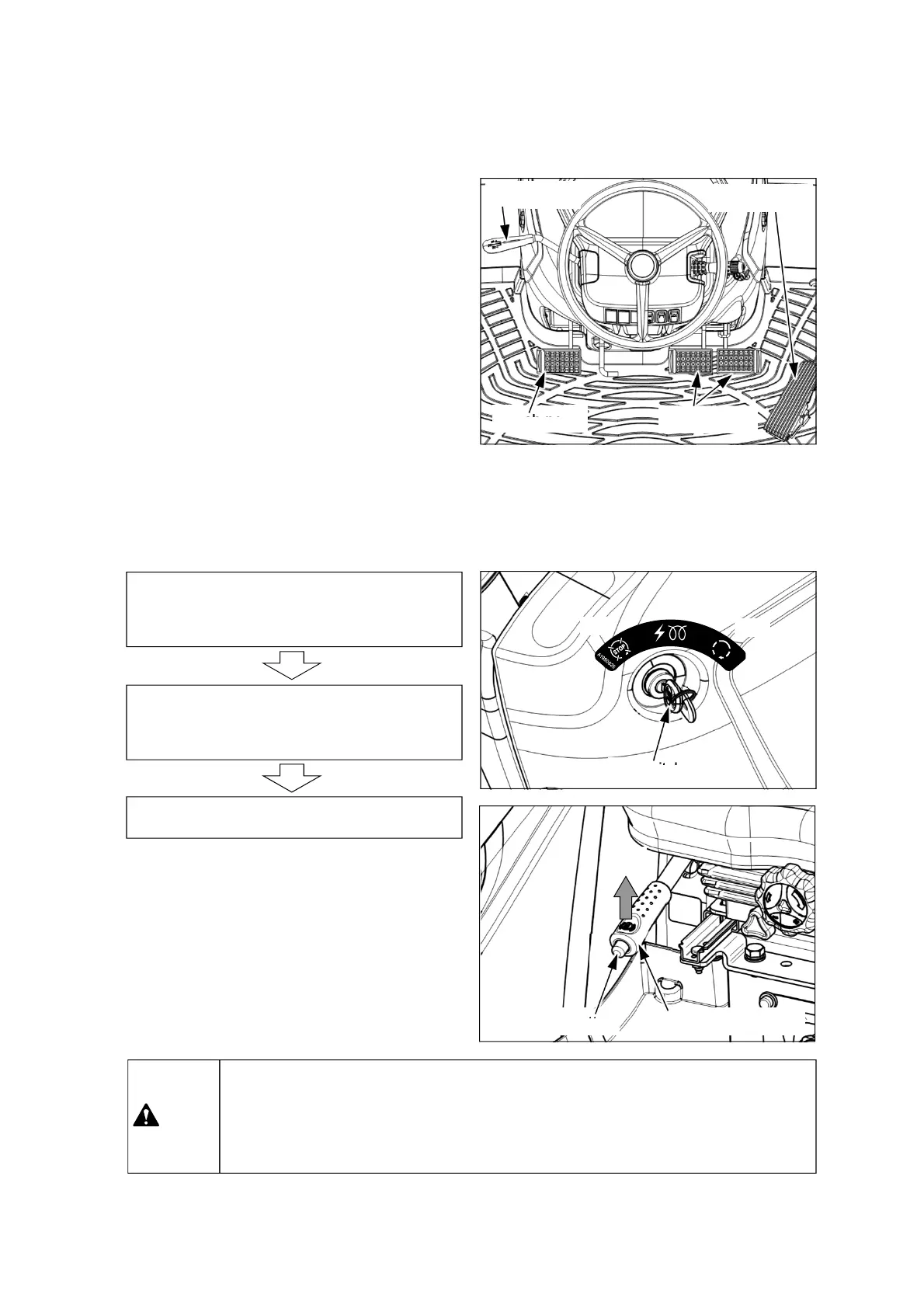▶ DO NOT depart from the tractor with the transmission gear placed in neutral