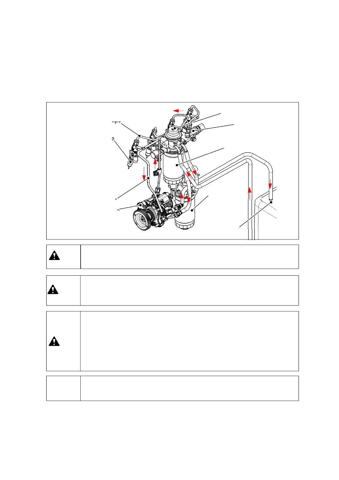 ▶ HIGH PRESSURE FUEL. When the engine is running, do not loosen the fuel