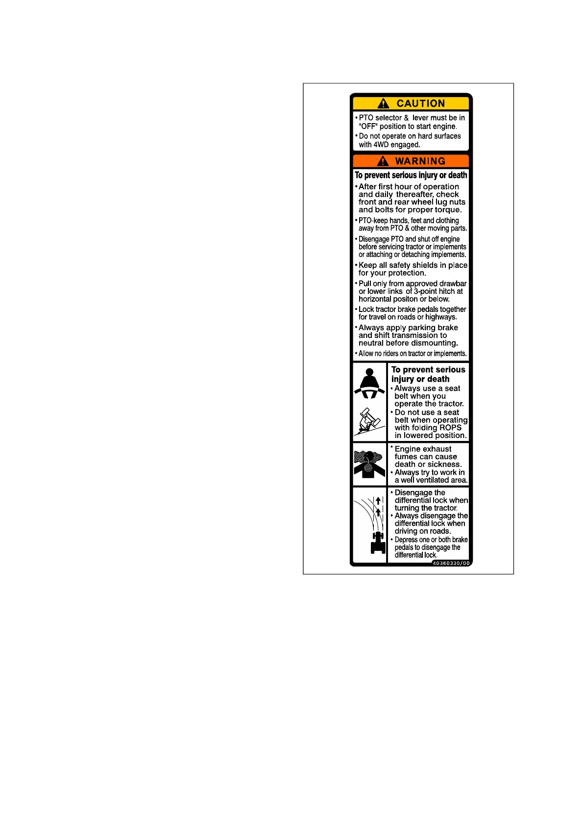 • PTO - keep hands, feet and clothing away from