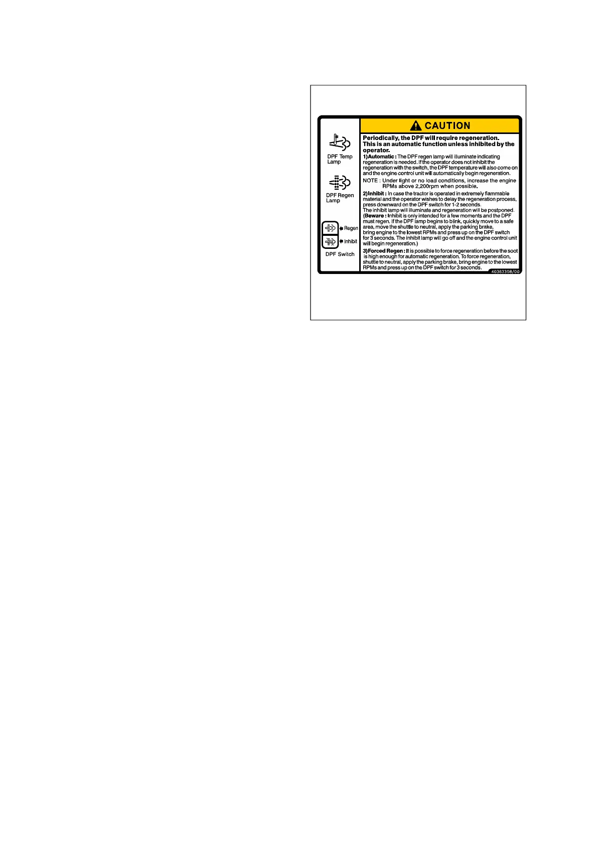 1) Automatic : The DPF regeneration lamp will