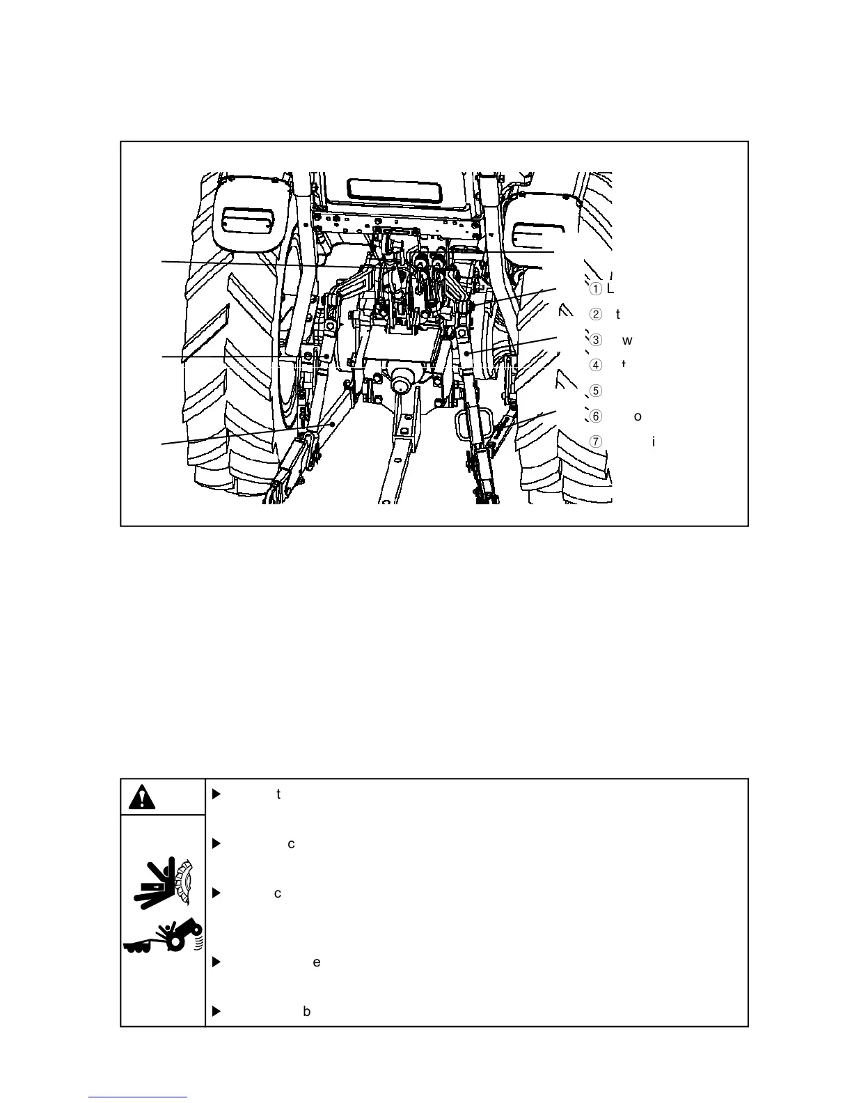 to avoid injury. Never connect to lower link or upper link of 3-point linkage. If not, it