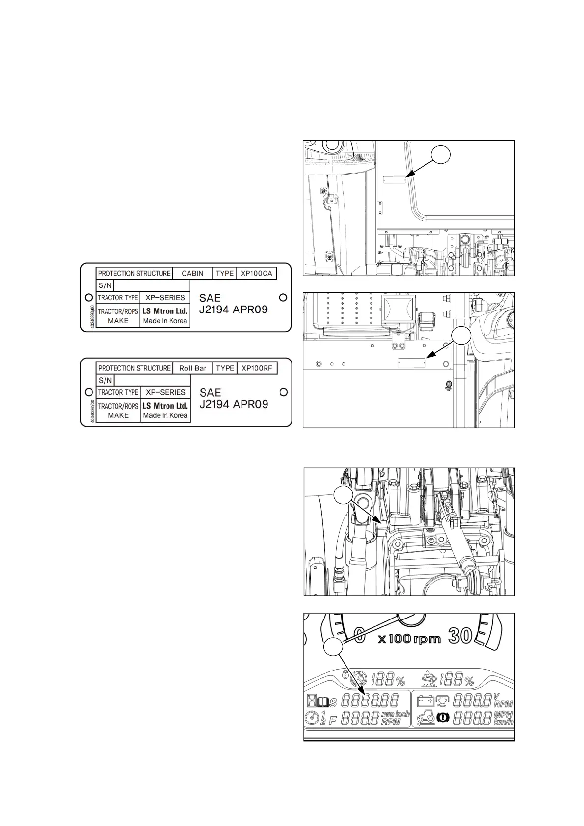 ④ TM number and Running hours