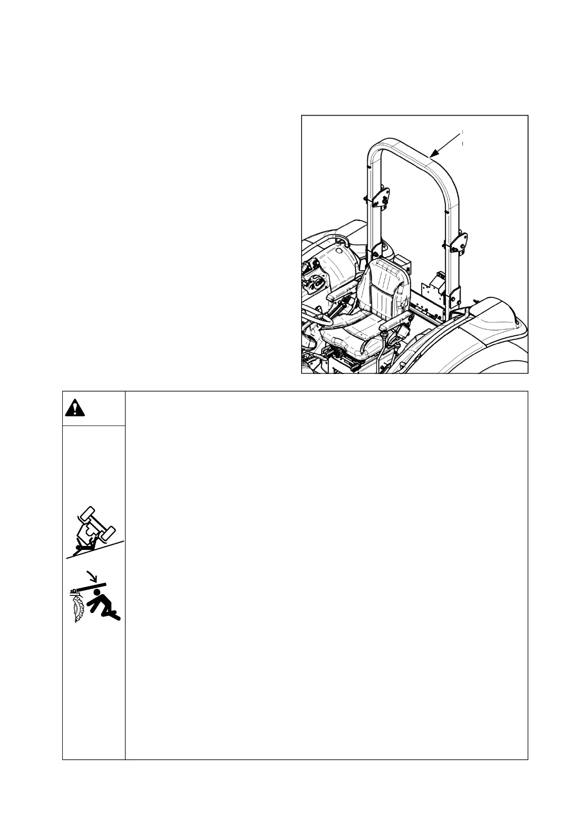 ▶ Do not connect chains or ropes to the ROPS for pulling purposes, as the vehicle
