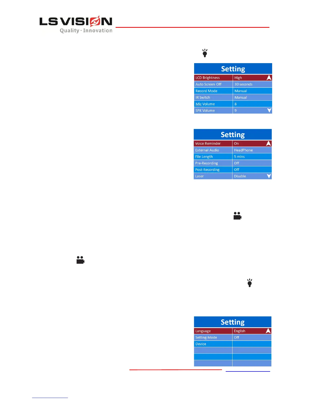 Set the language for the device according to the user’s demands, the default is English.