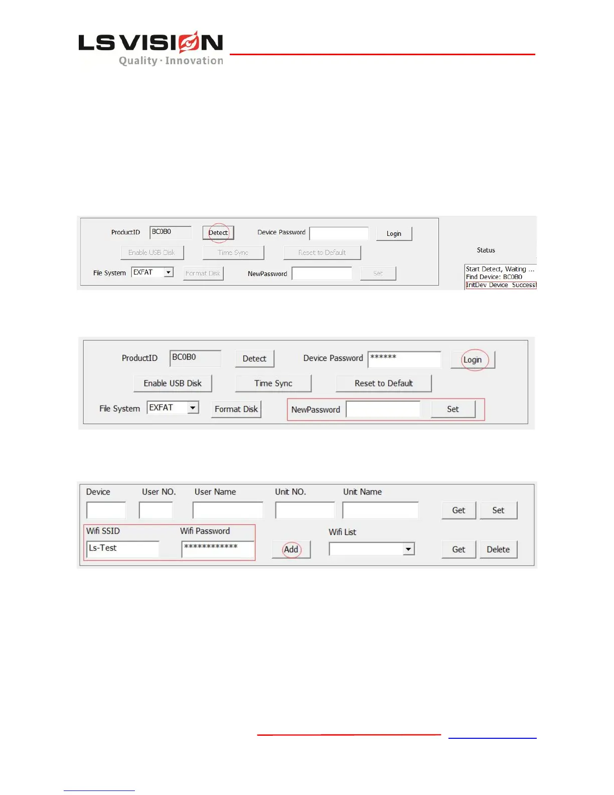 ④ Input password “888888” (Default), click on Login. It will display “Success” in Status. And also