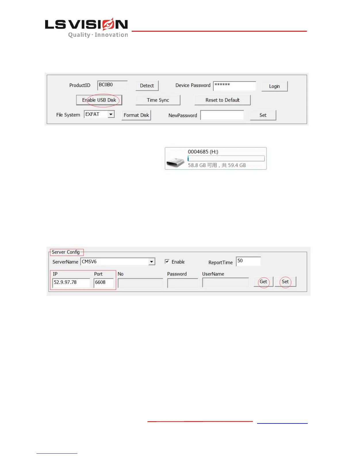 ② Connect to the PC, run and login BodyCamTool.exe. Click on Get in Server Config Box, it will